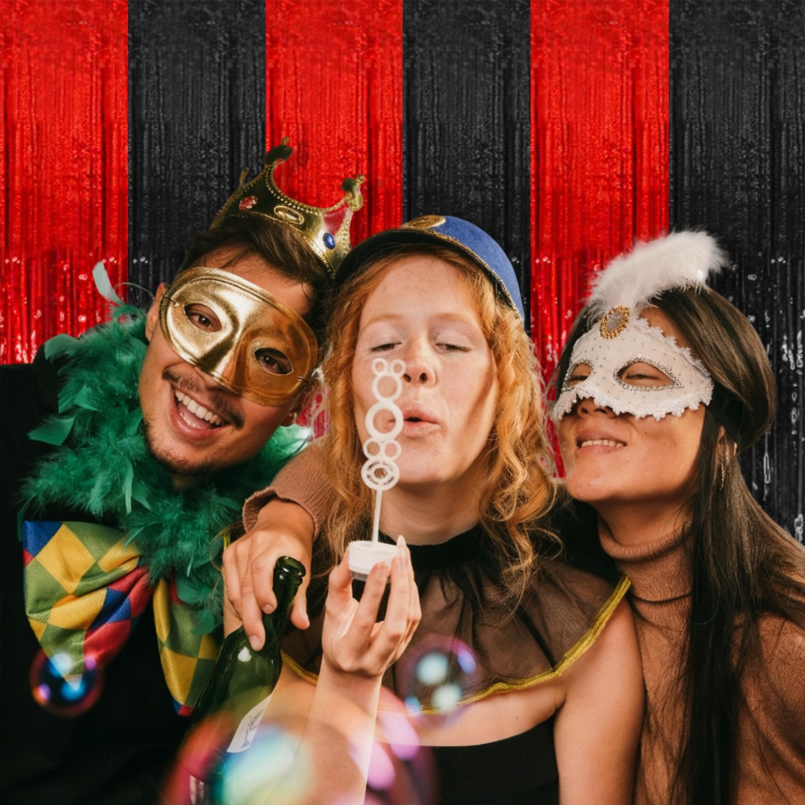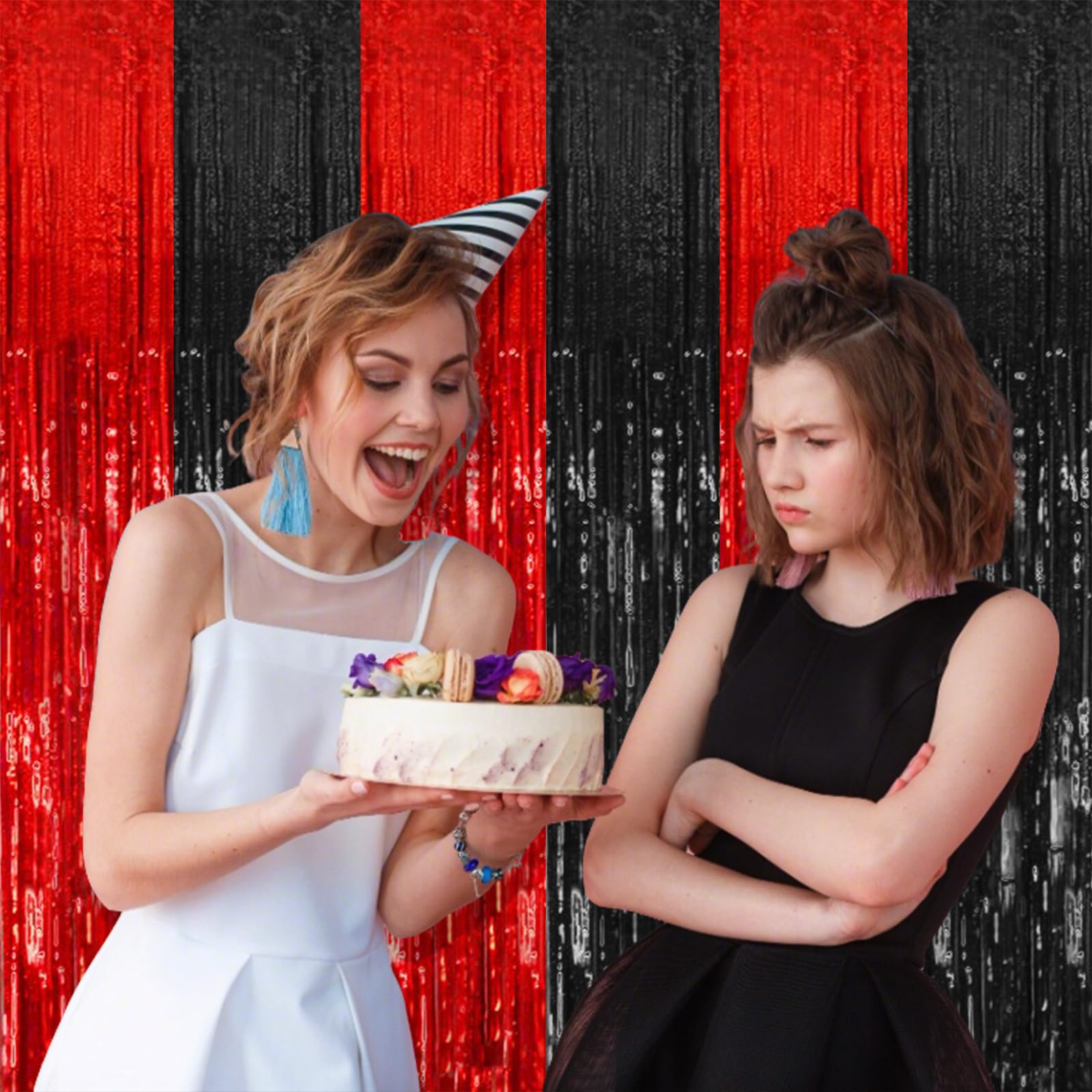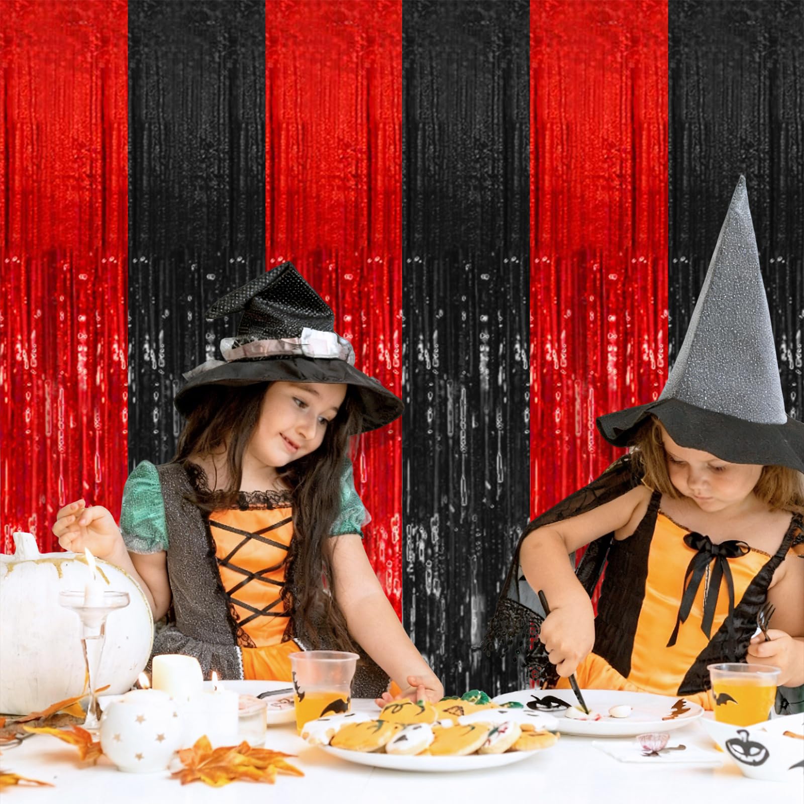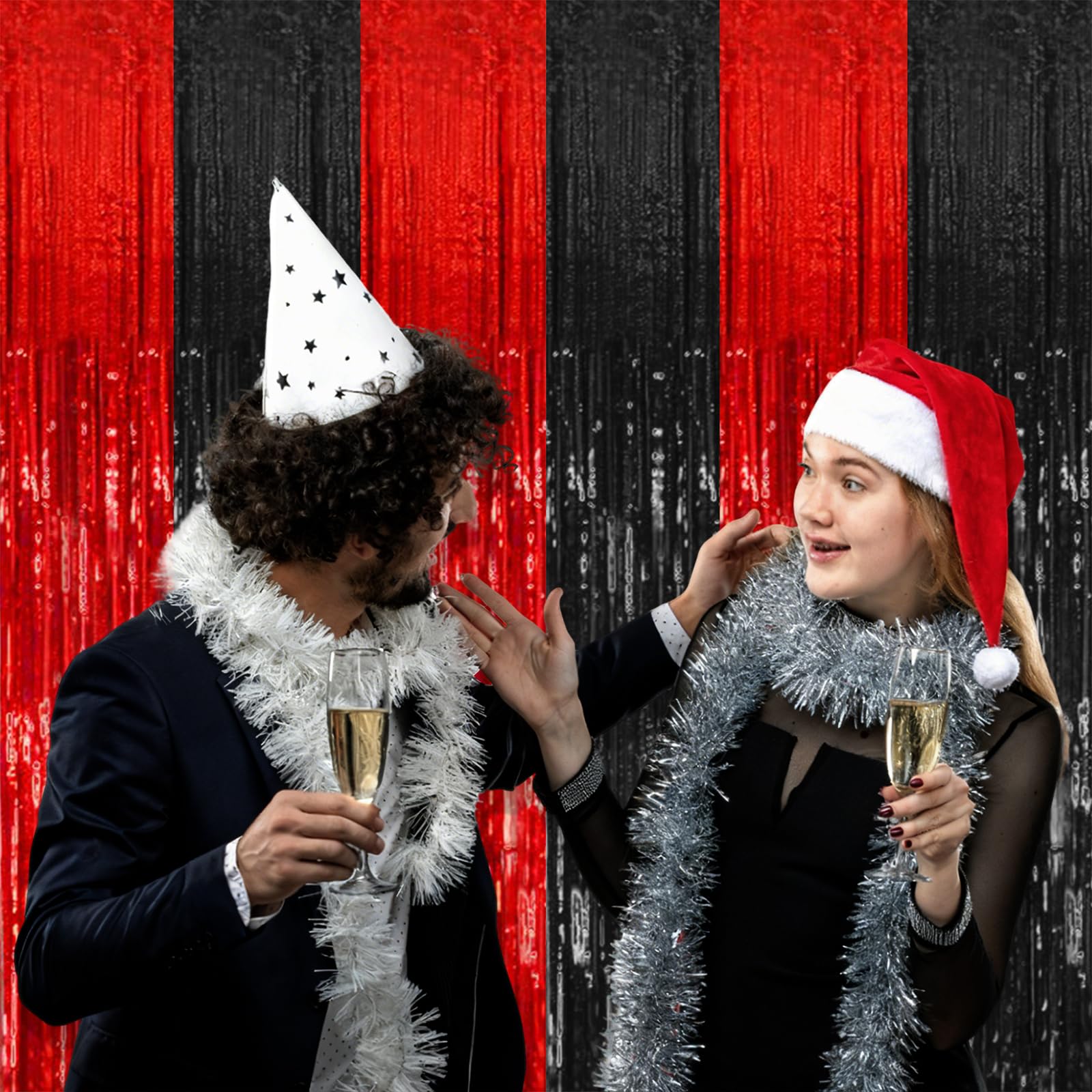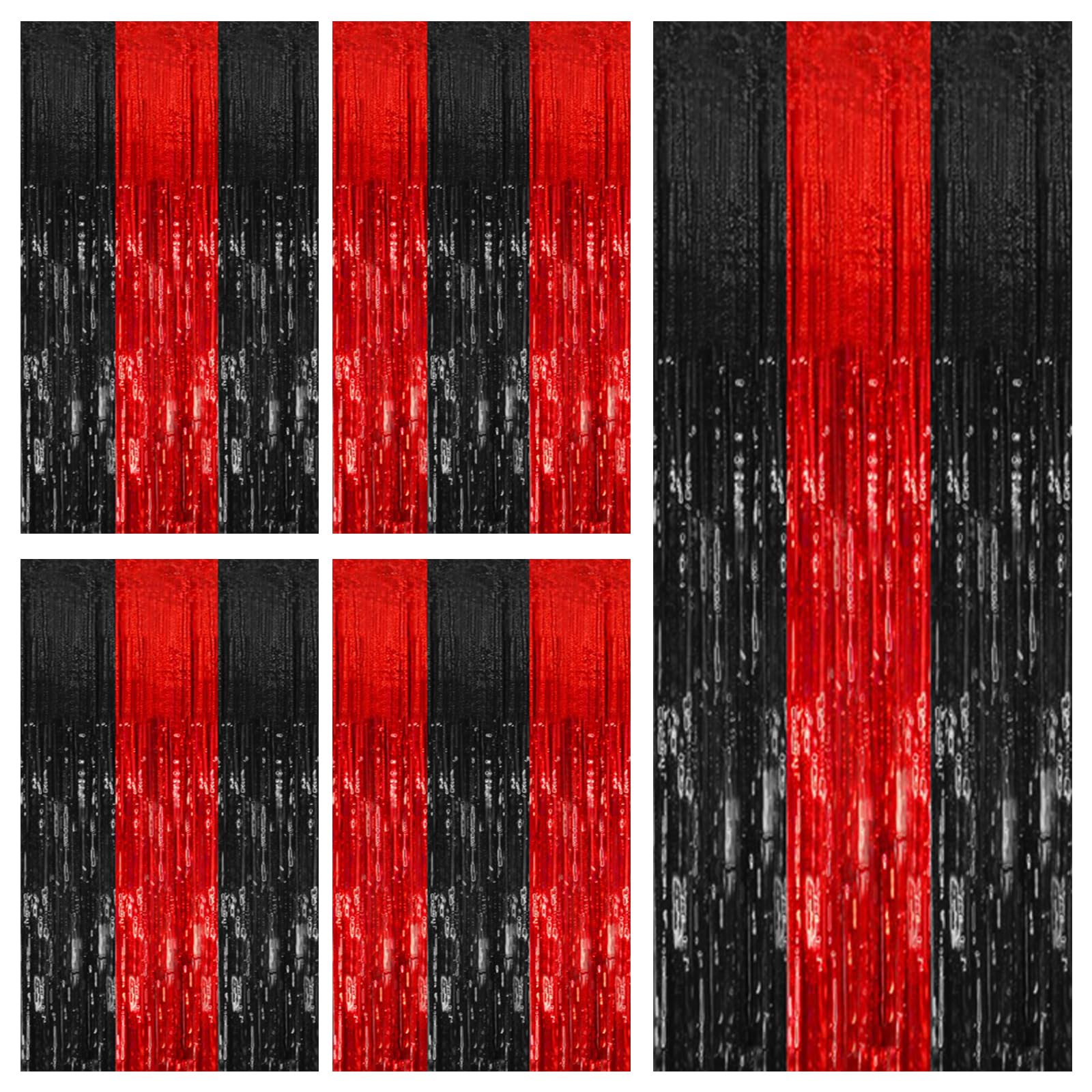 5 Pack Black and Red Party Backdrop Streamers Decorations Foil Fringe Curtains Metallic Tinsel Backdrop for Birthday Halloween Christmas New Year Fancy Ball Graduation Party Decor