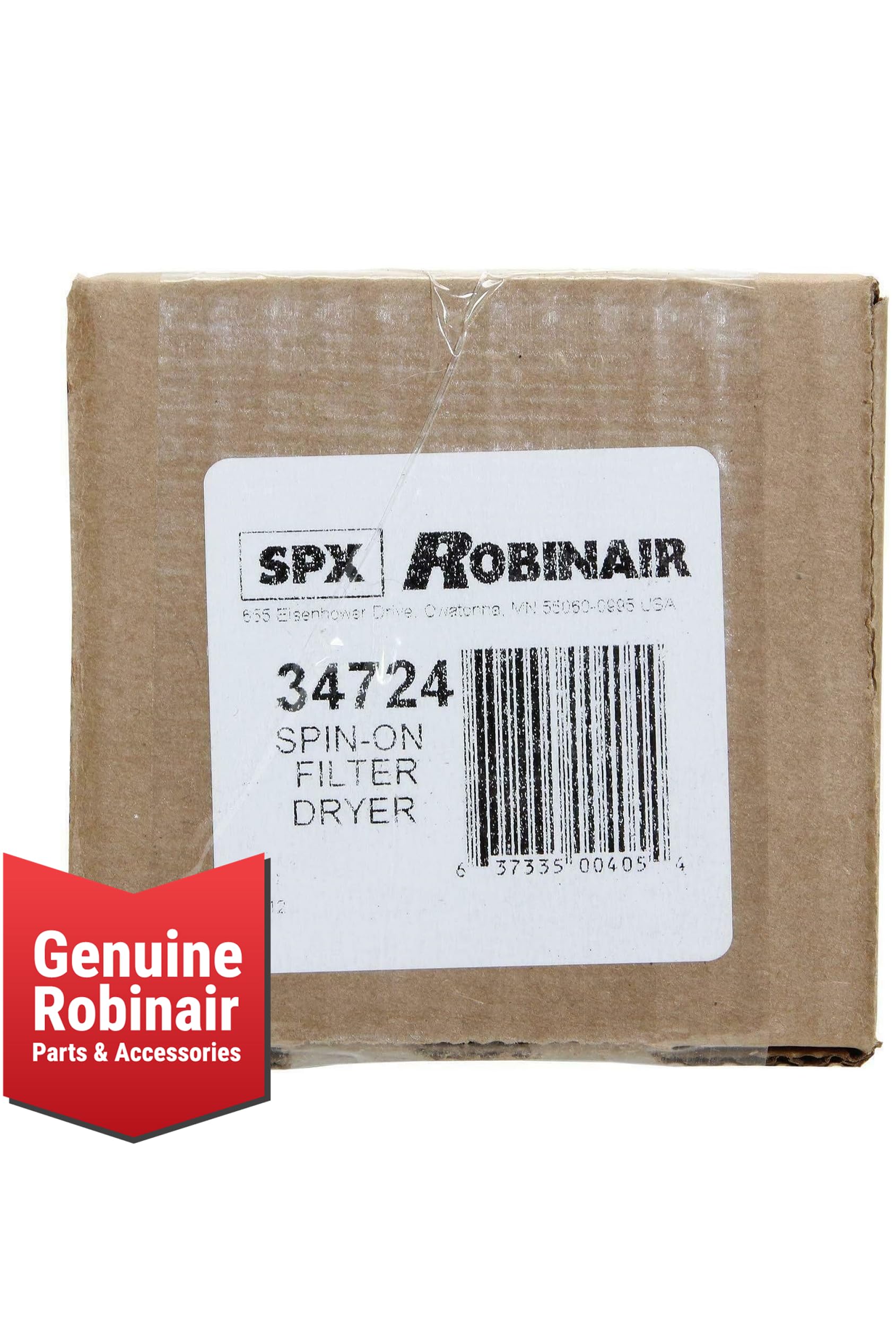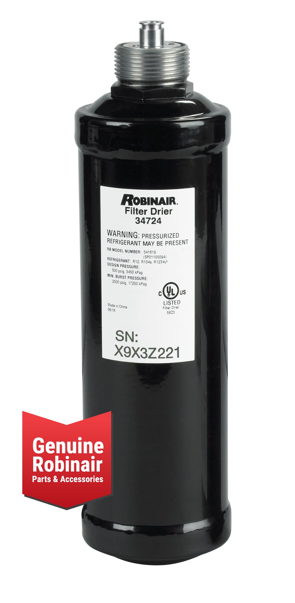 Robinair's 34724 A/C Recycling Filter-Drier Spin-On Filter is a genuine Robinair replacement part that features OE fit, form, and function to ensure ease of installation and proper performance. Specially blended materials promote maximum acid and moisture removal. For Robinair 17700-2K, 34134A, 34134-2K, 342000, 34234, 34300-2K, 34700, 34700-2K, 34700Z, 34788, 34800, 34800-2K, and 34900 refrigerant recovery, recycle, and recharge stations. Includes activation code necessary for use. Sold individually. Robinair, a Bosch Automotive Service Solutions brand, is a global leader in service tools and equipment based in Owatonna, Minnesota. Robinair is recognized throughout the world as the quality and performance leader in AC/R evacuation tools and this position has led to its success with the full range of products that serve the heating/ventilating/air conditioning/refrigeration (HVAC-R) and mobile markets.