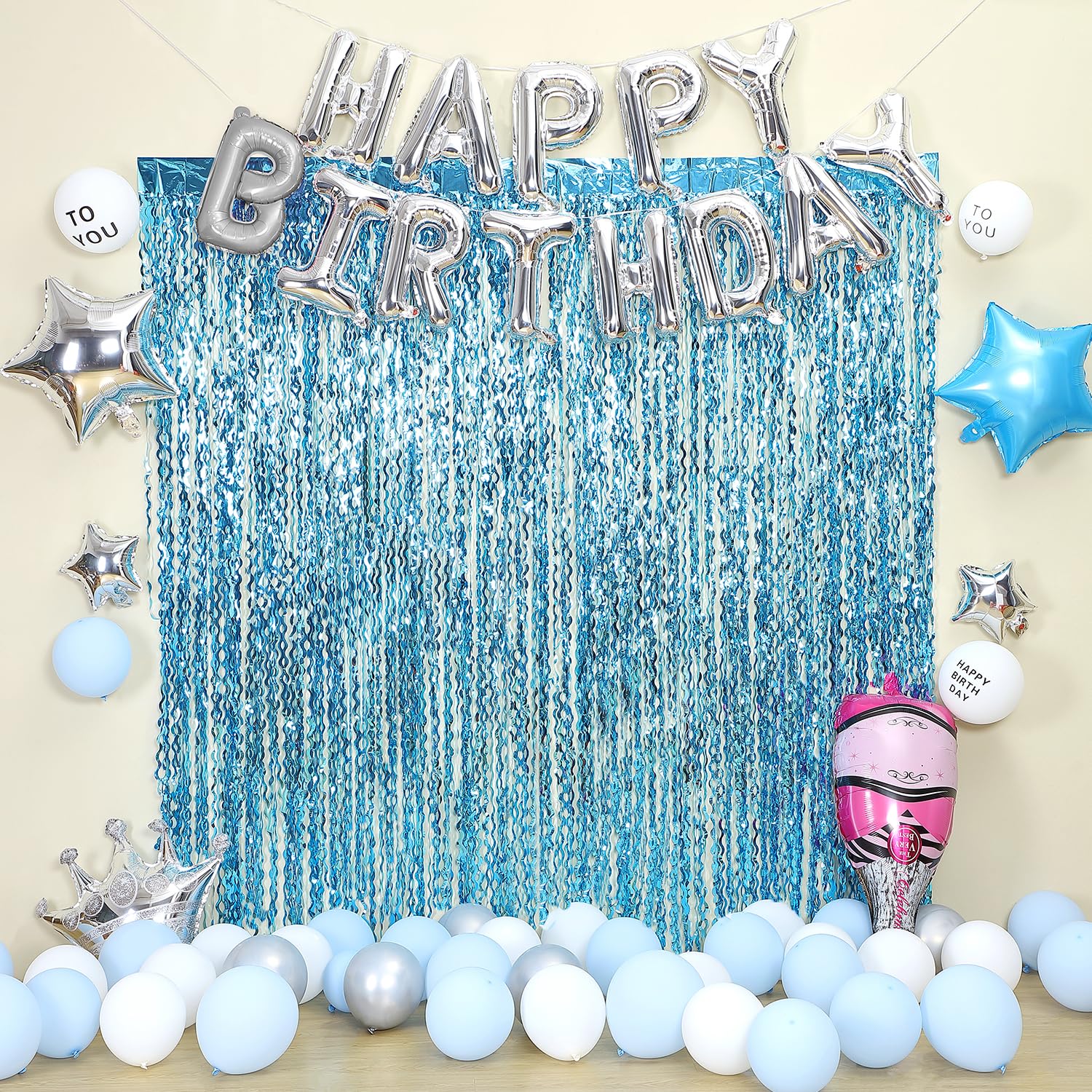 Wavy Shape: Baby blue fringe backdrop have special wavy shape and shining smooth metallic surface, which offer you a full texture that is appealing to the eye, can help you enhance your party atmosphere, adding color and spicing up your party events