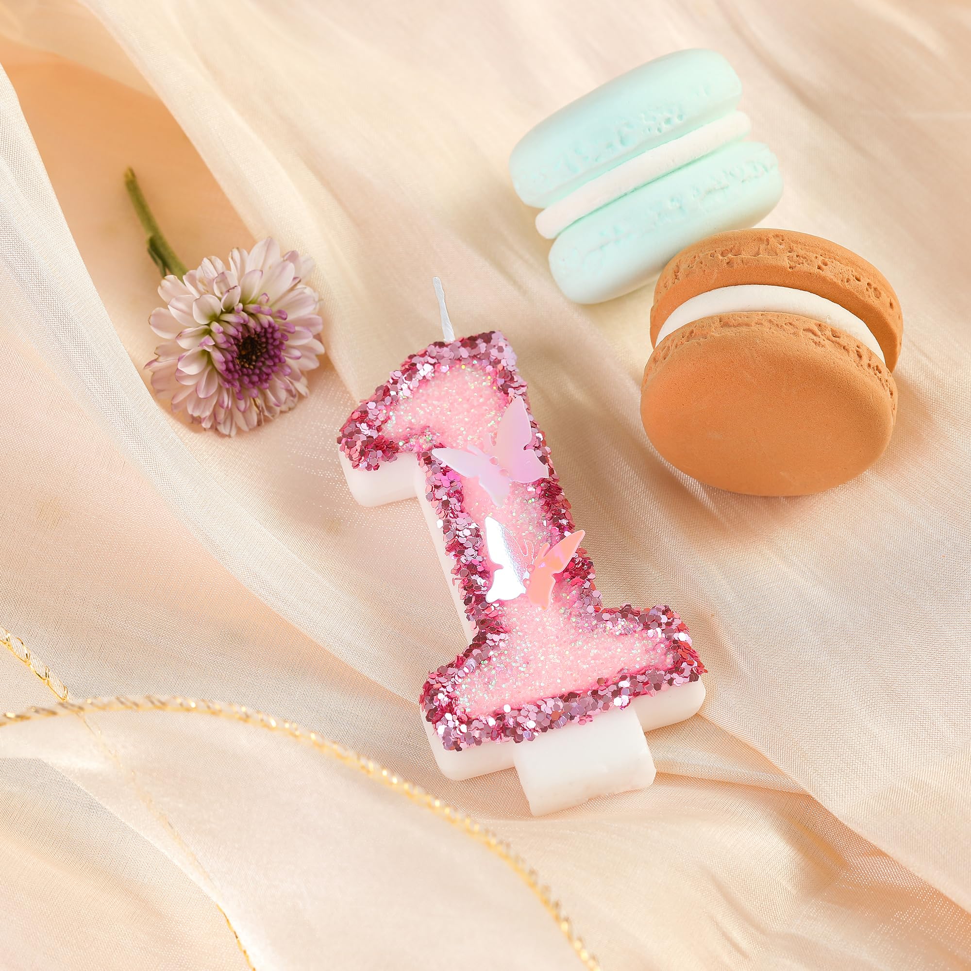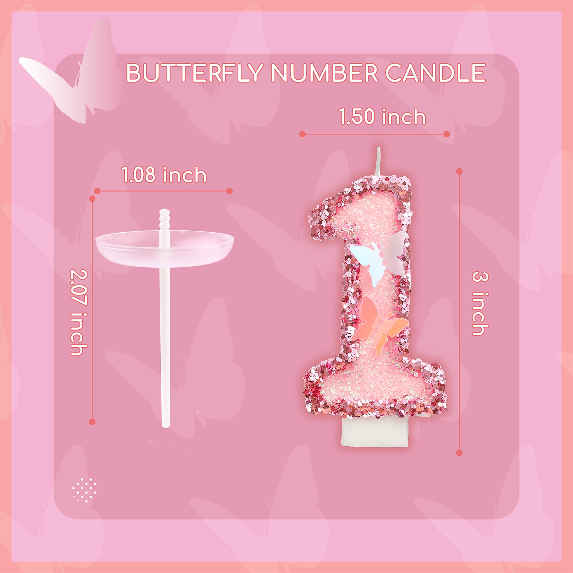 New: 3 Inch Large Pink Butterfly 1 Number Birthday Candle designed to make your cake a memorable celebration!