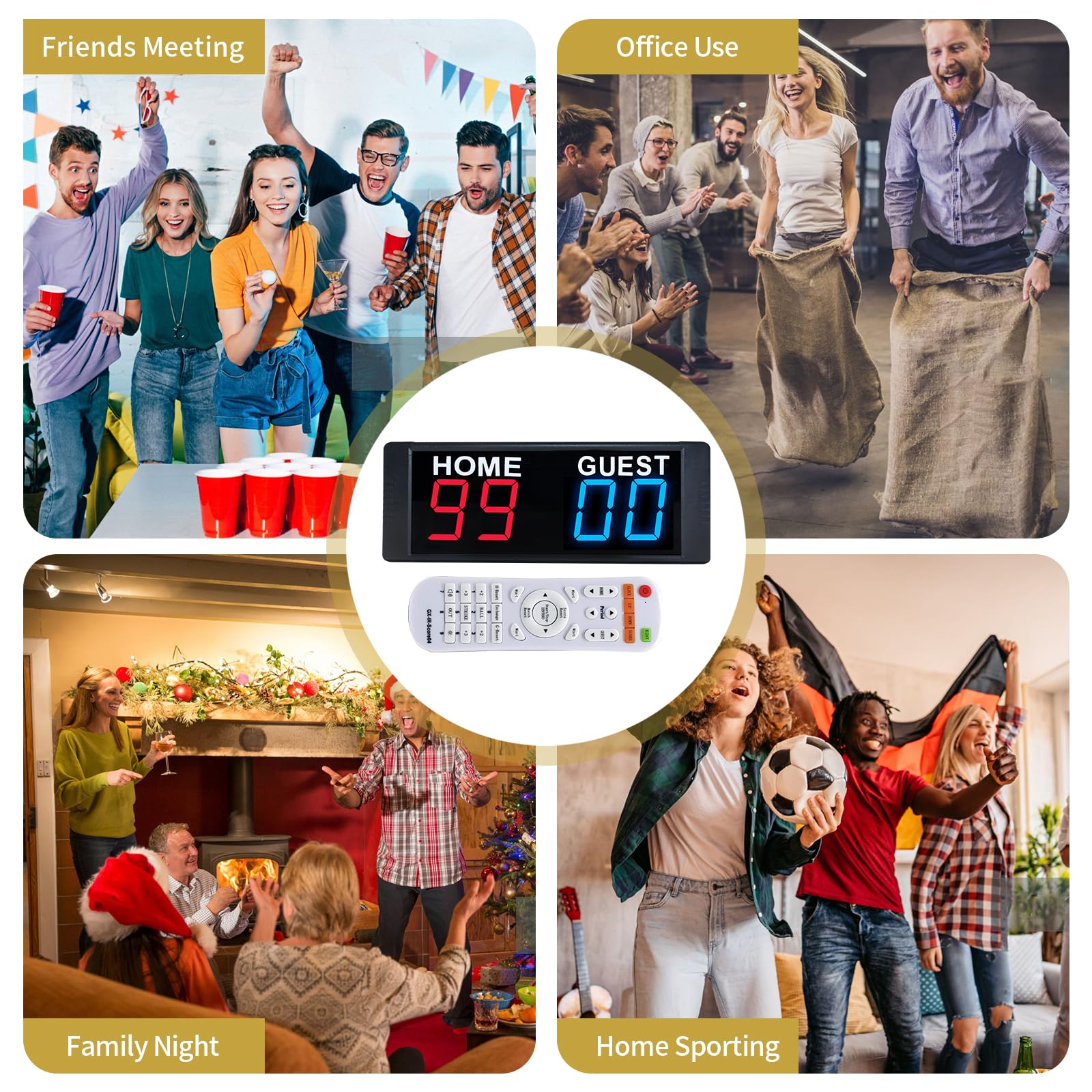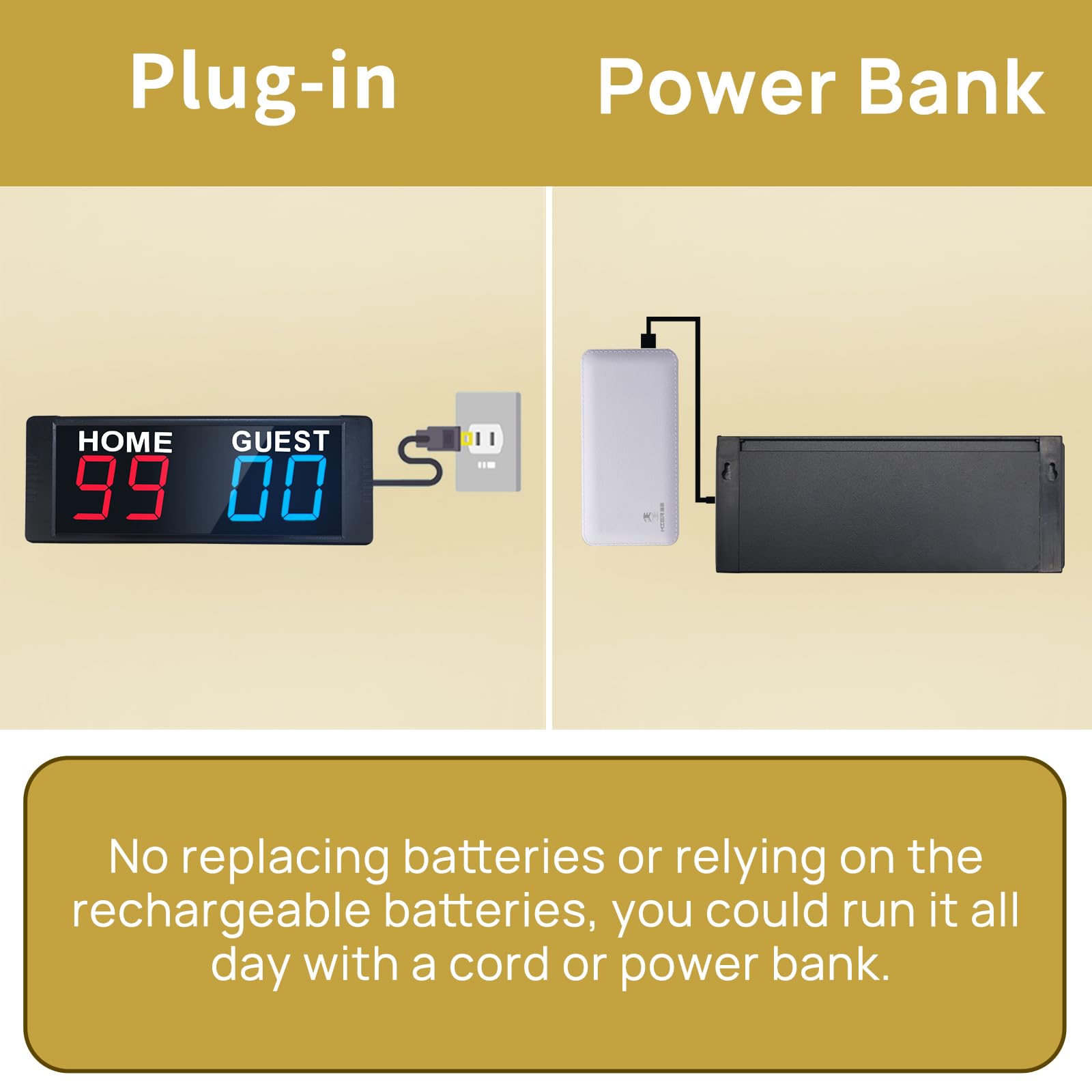 🥇【Clear & Bright】 Different from traditional flip scorebard, YZ scoreboard is designed and made by bright LED, 33ft Visibility and 5-levels brightness adjustment. Red and blue two-color design make it easier to distinguish between home and guest teams.