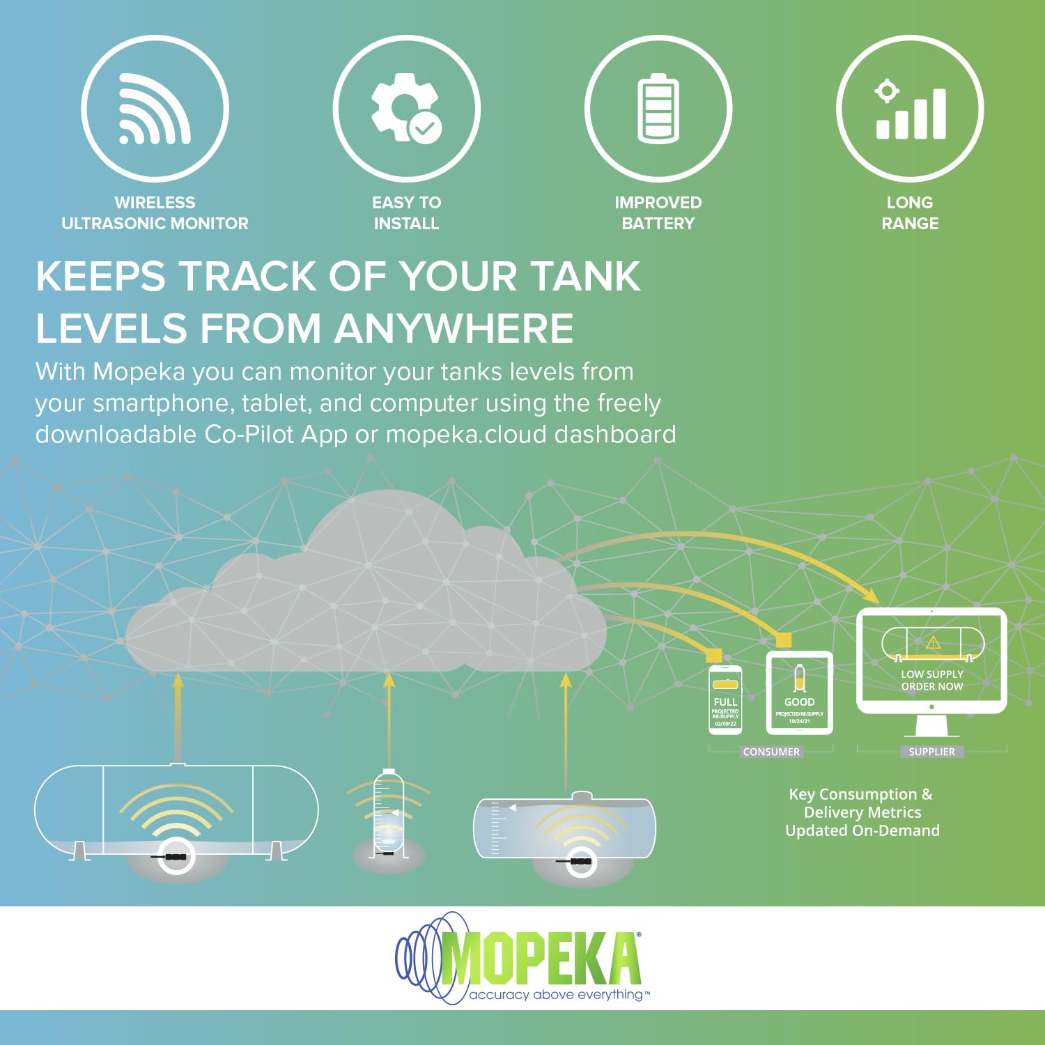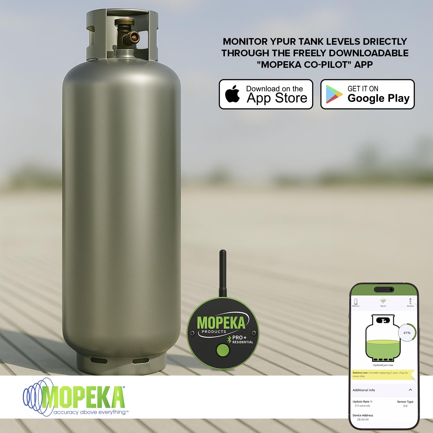 FREE MOBILE APP - Download our user-friendly Mopeka Co-Pilot app for free on Apple and Google Play stores to get real-time data about your tank. With unlimited tank and sensor support, the app allows customizable alarms to suit your preferences and check your tank's level wherever you are.