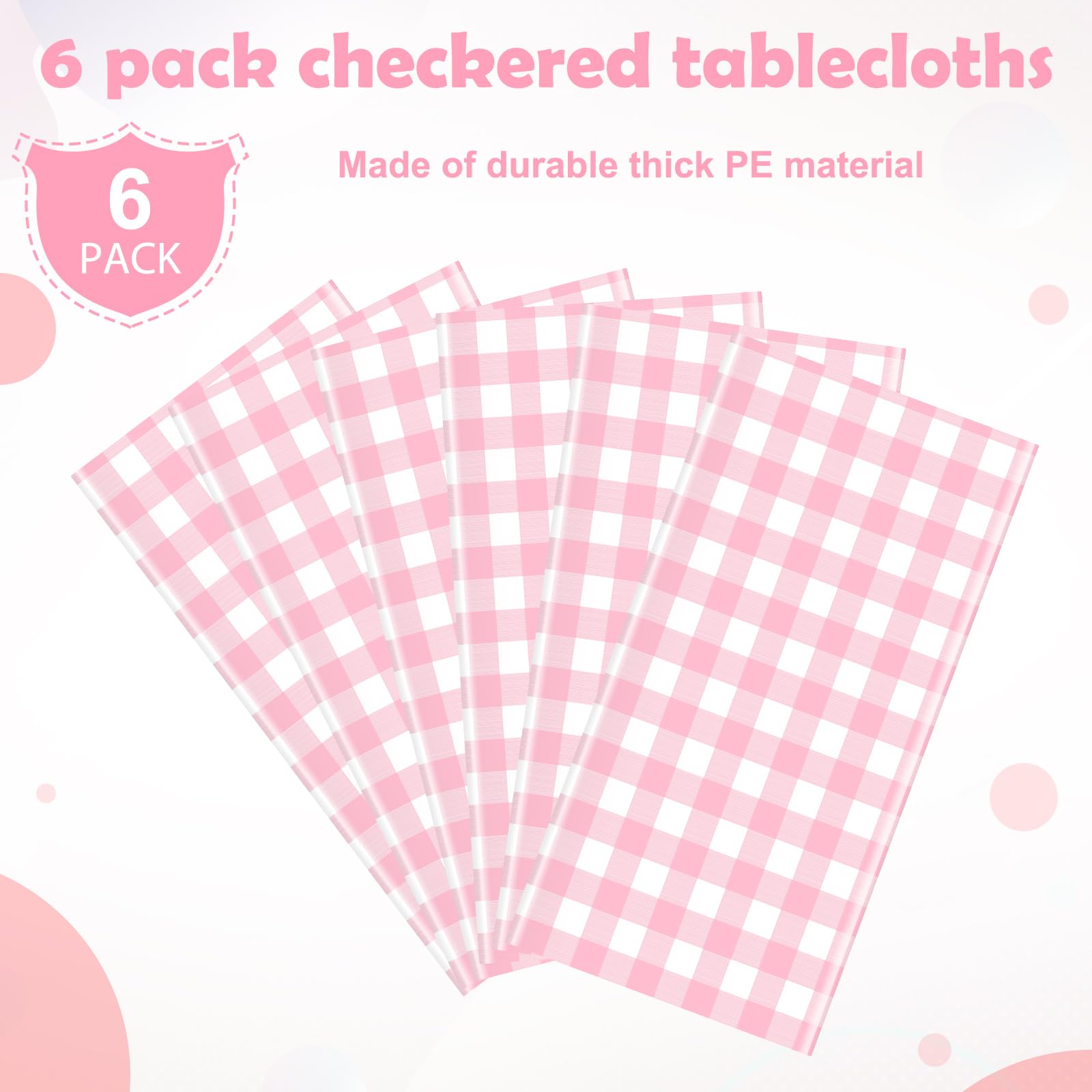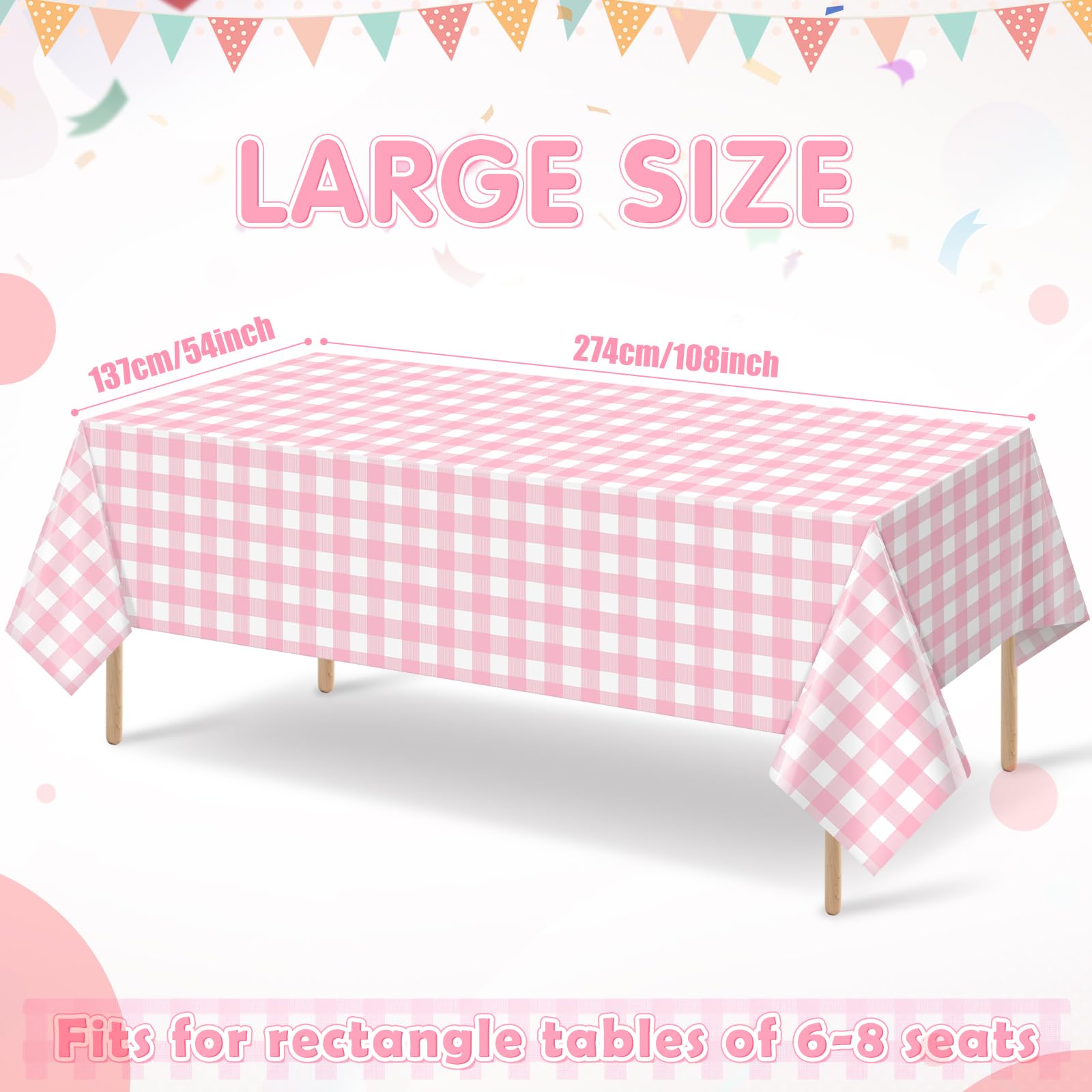Packing Include:you will receive 6 pieces of plastic pink checkered tablecloths for rectangle tables,this disposable tablecloth each measures 54×108 inches,which fits for most rectangle tables of 8-10 seats,sufficient quantities can meet your use and replacement needs.