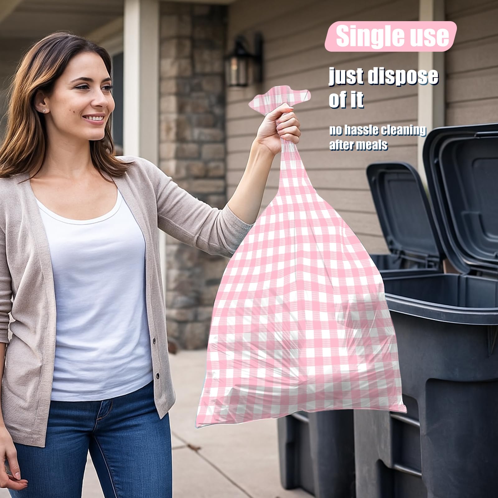 Easy to Use: you just need to unfold these pink checkered tablecloths up on table then you can use it,and these witch plastic disposable tablecloth are waterproof,if it gets dirty,you can clean it with cloth or paper easily.or you can throw it directly after your party,no need to worry about cleaning up.