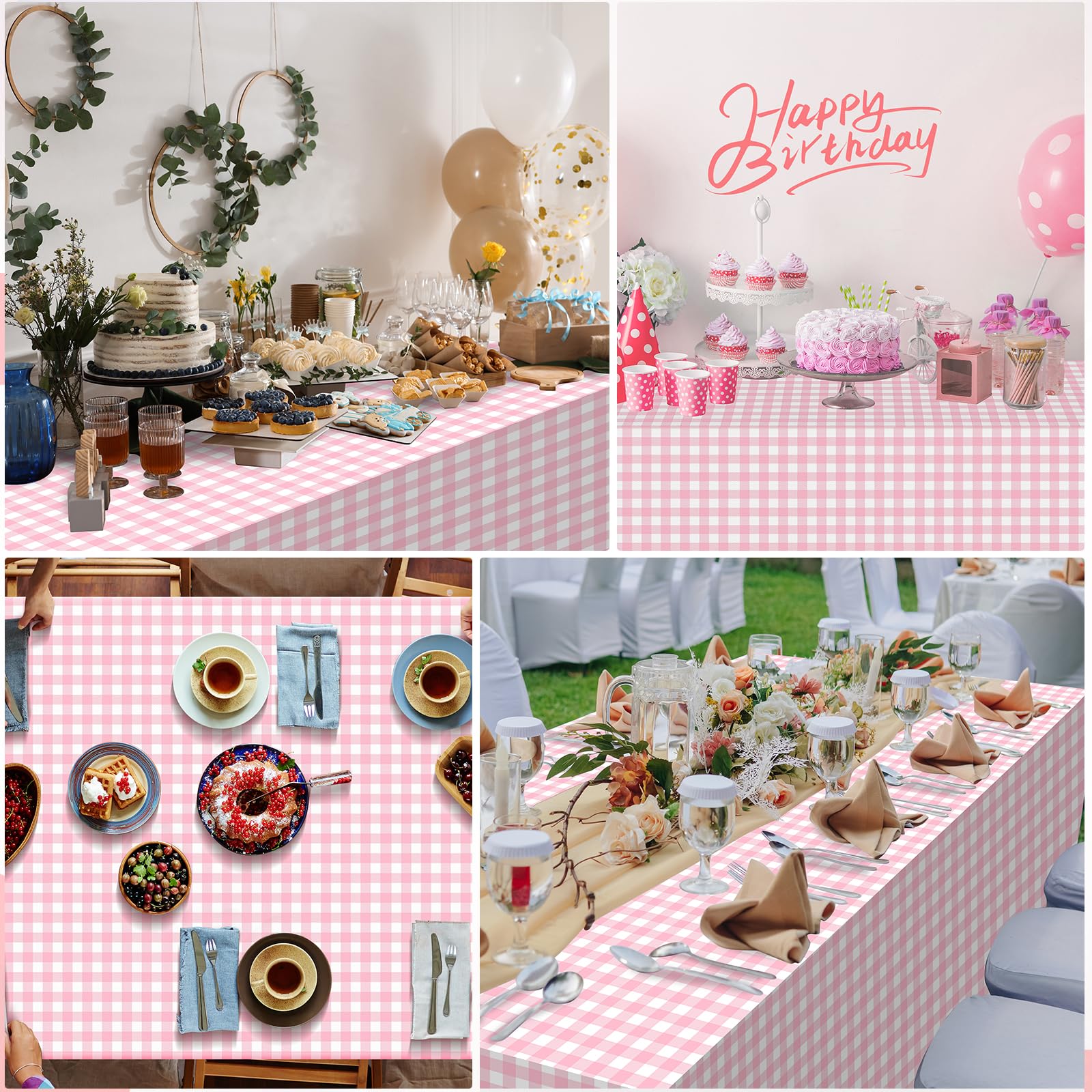 Wide Application:this pink plaid plastic tablecloth disposable could be matched with checkered party decorations,are ideal for birthday parties,theater events.