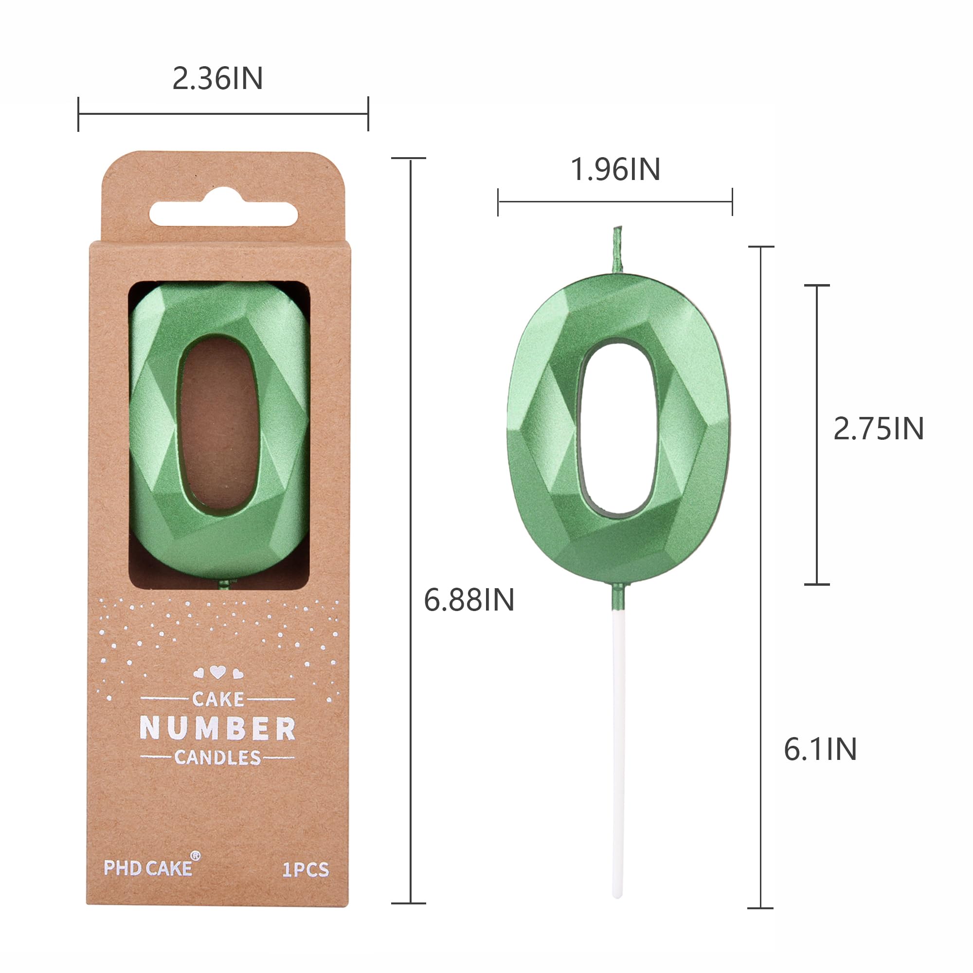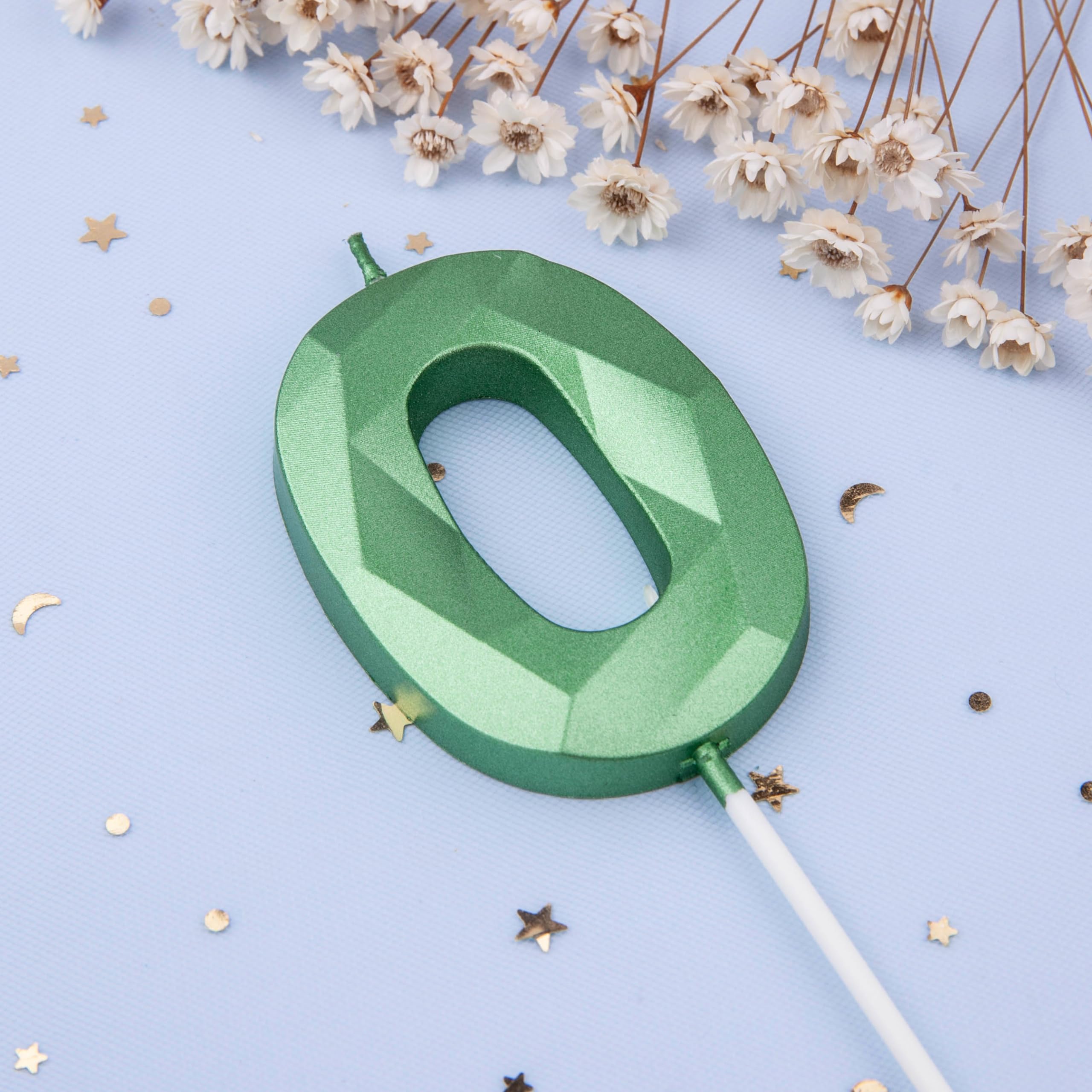New: 2.76 Inch Large Crystal Green 0 Number Birthday Candle designed to make your cake and birthday a unique and truly inspiring event.