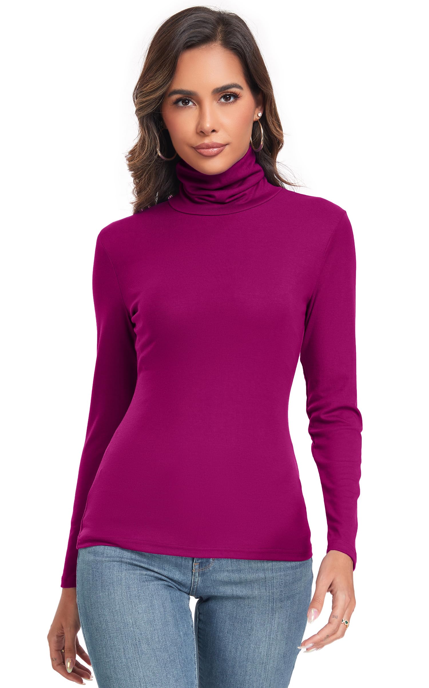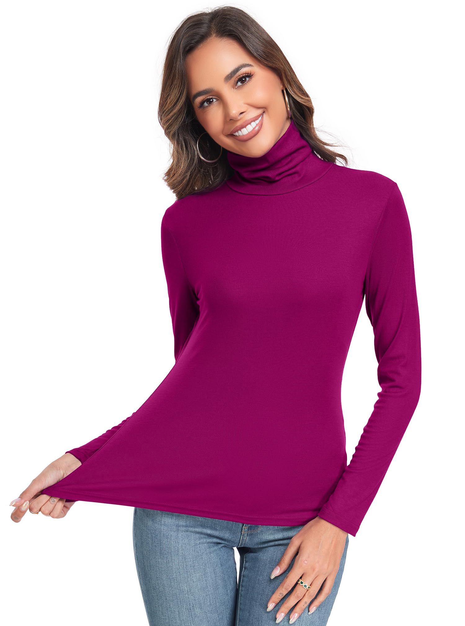 Description Womens Turtleneck Long Sleeve Shirts Thermal Underwear Tops Women Mock Neck Turtleneck Active Shirt Base Layer Long Sleeve Underwear Tops make yourself comfortable and stylish. Stretchy, lightweight but not see through. Slim fit but so soft and comfort. Our long sleeve turtleneck top can be easily paired with shorts, jeans, trousers, skirts, high heels, or boots. You'll look sexy, fashionable, and elegant in any occasion. Women's High Neck Long Sleeve Turtleneck T-Shirt great for cold weather, this turtleneck makes from stretchy and breathable fabric and snug fits to your neck. A necessity for every woman's wardrobe! Machine wash, Not fade, Us Standard Size. Please refer to the size chart before purchasing. Size Chart Small --- Bust 33.0" --- Sleeve 22.8" --- Length 24.4" Medium --- Bust 35.4" --- Sleeve 23.2" --- Length 24.8" Large --- Bust 37.8" --- Sleeve 23.6" --- Length 25.2" X-Large --- Bust 40.2" --- Sleeve 24.0" --- Length 25.6" XX-Large --- Bust 42.6" --- Sleeve 24.4" --- Length 26.0" Note: 1. Please allow 0.4-0.8 inch differ due to manual measurement. 2. Due to the light and different computer monitor, the color may be slightly different as pictures.