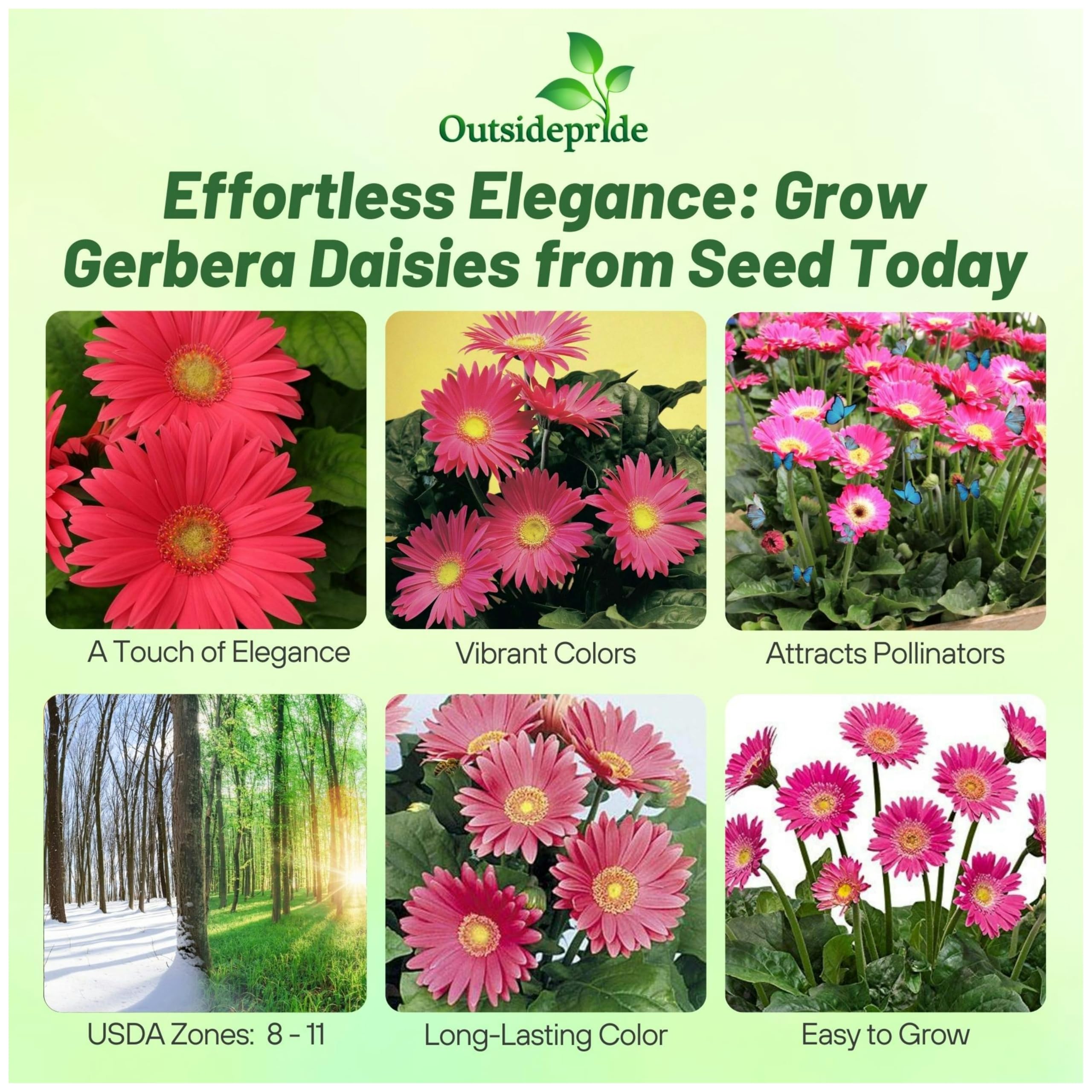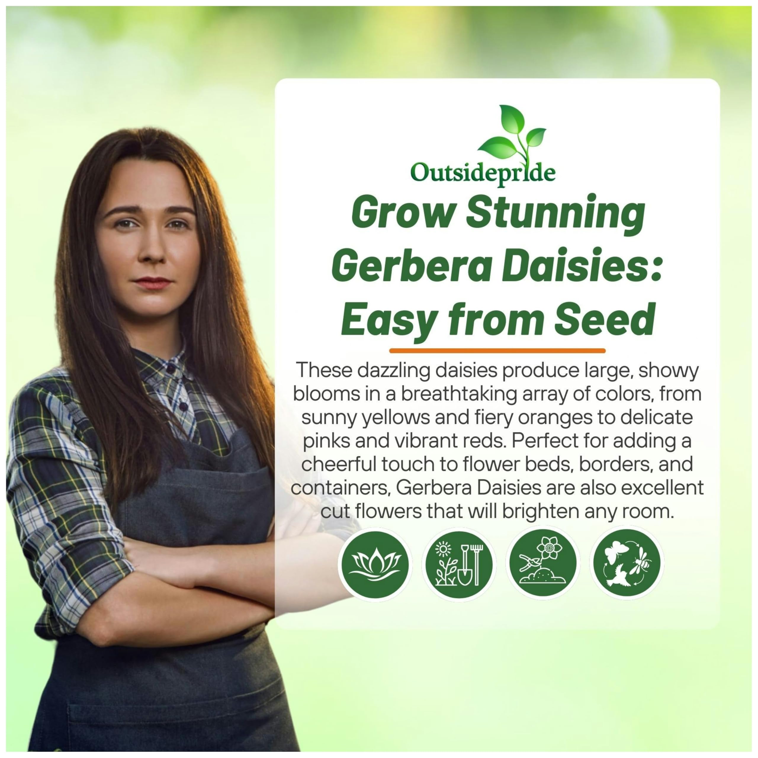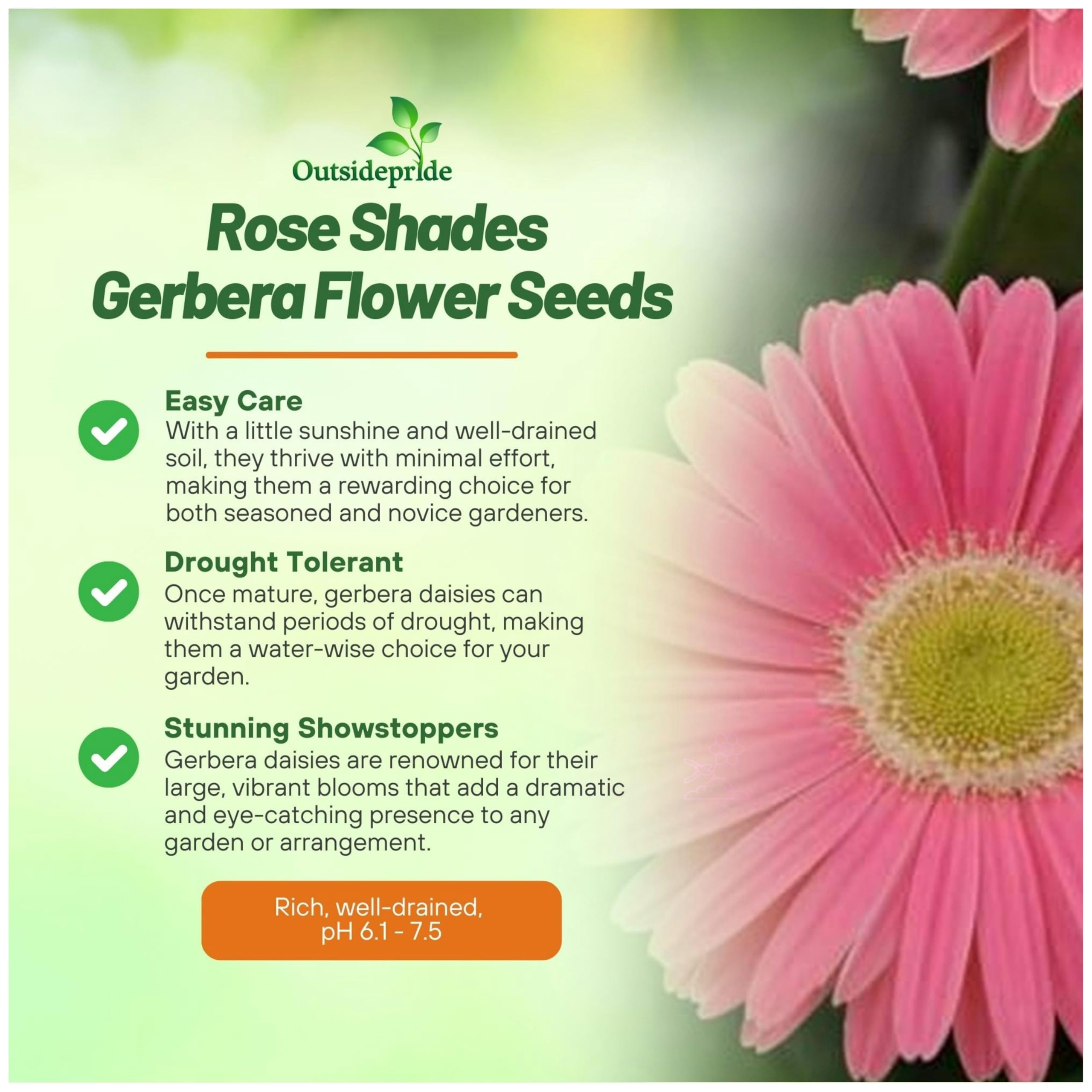 VIBRANT MOUNDED BLOOMS: Brighten your garden with the stunning colors of Rose Shades Gerbera Daisy Seeds in vibrant rose shades. With mounding foliage, our large dazzling flowers add a pop of charm and elegance, transforming any indoor and outdoor space into a colorful oasis. Perfect for garden beds, pots, or as cut flowers, their bold, eye-catching appeal is sure to impress.