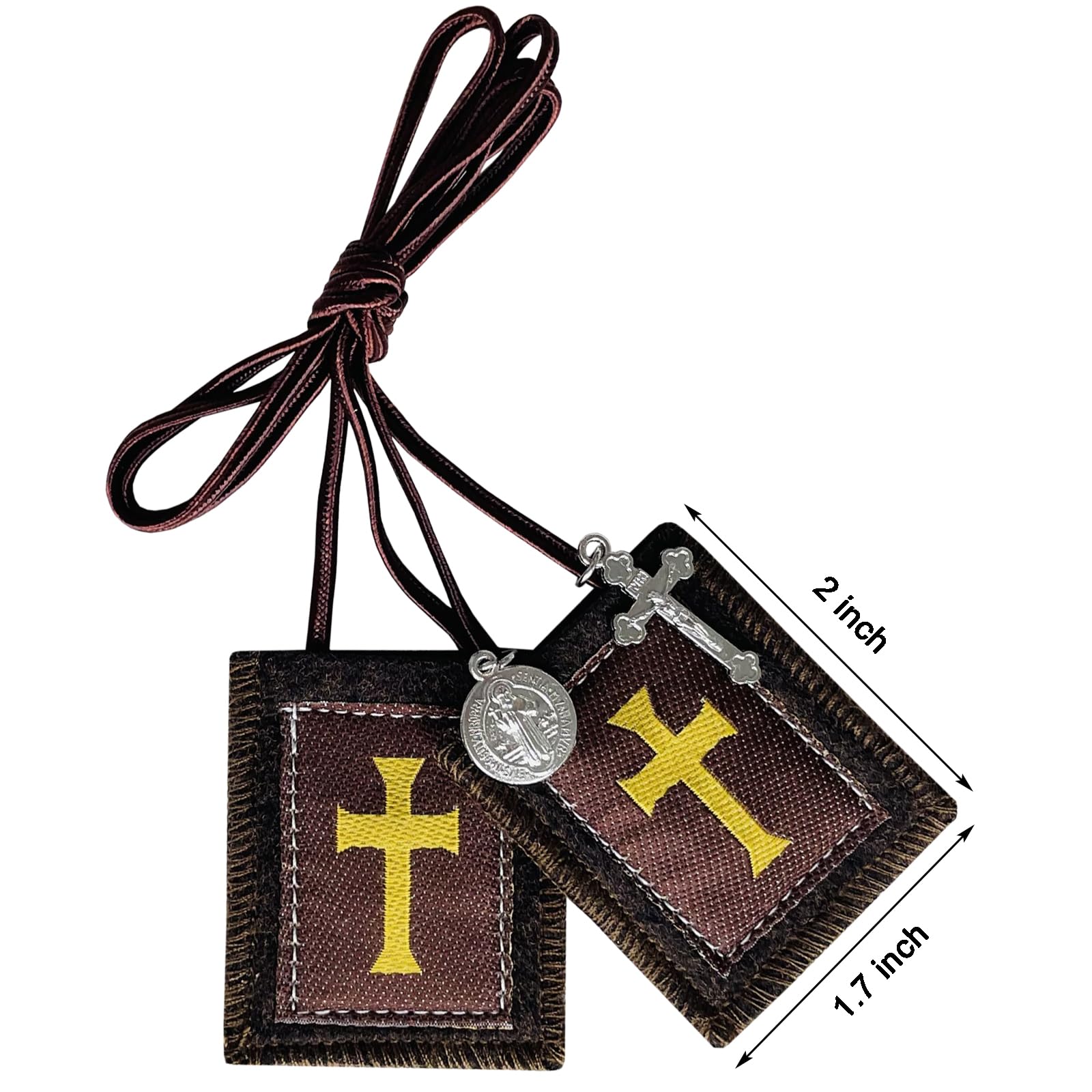 Beautiful Decor: The brown scapular, made of soft and durable wool and featuring holy subjects and saints, adds a touch of spirituality to your car's interior. Consider adding a brown scapular decor your collection of Saint Jude, St. Joseph, our lady of fatima, virgin mary, blessed mother mary, St. Michael the Archangel, mary magdalene, Sacred Heart of Jesus, Our Lady of Guadalupe, la Santa Muerte statues. And decor wall crosses, kitchen wall, mexican decor etc..