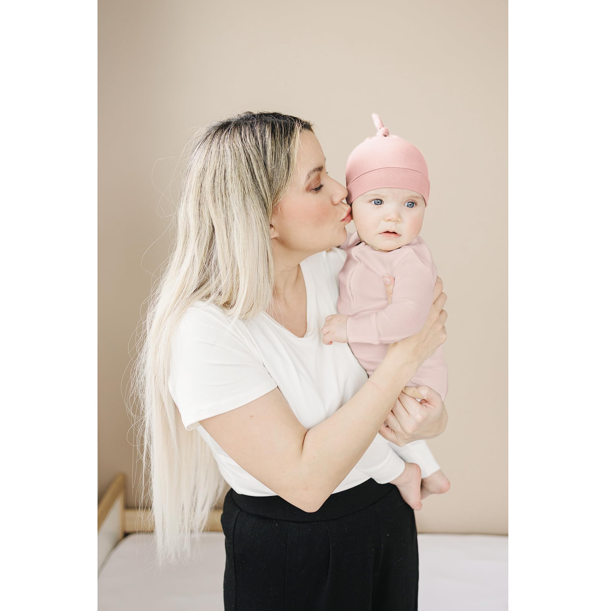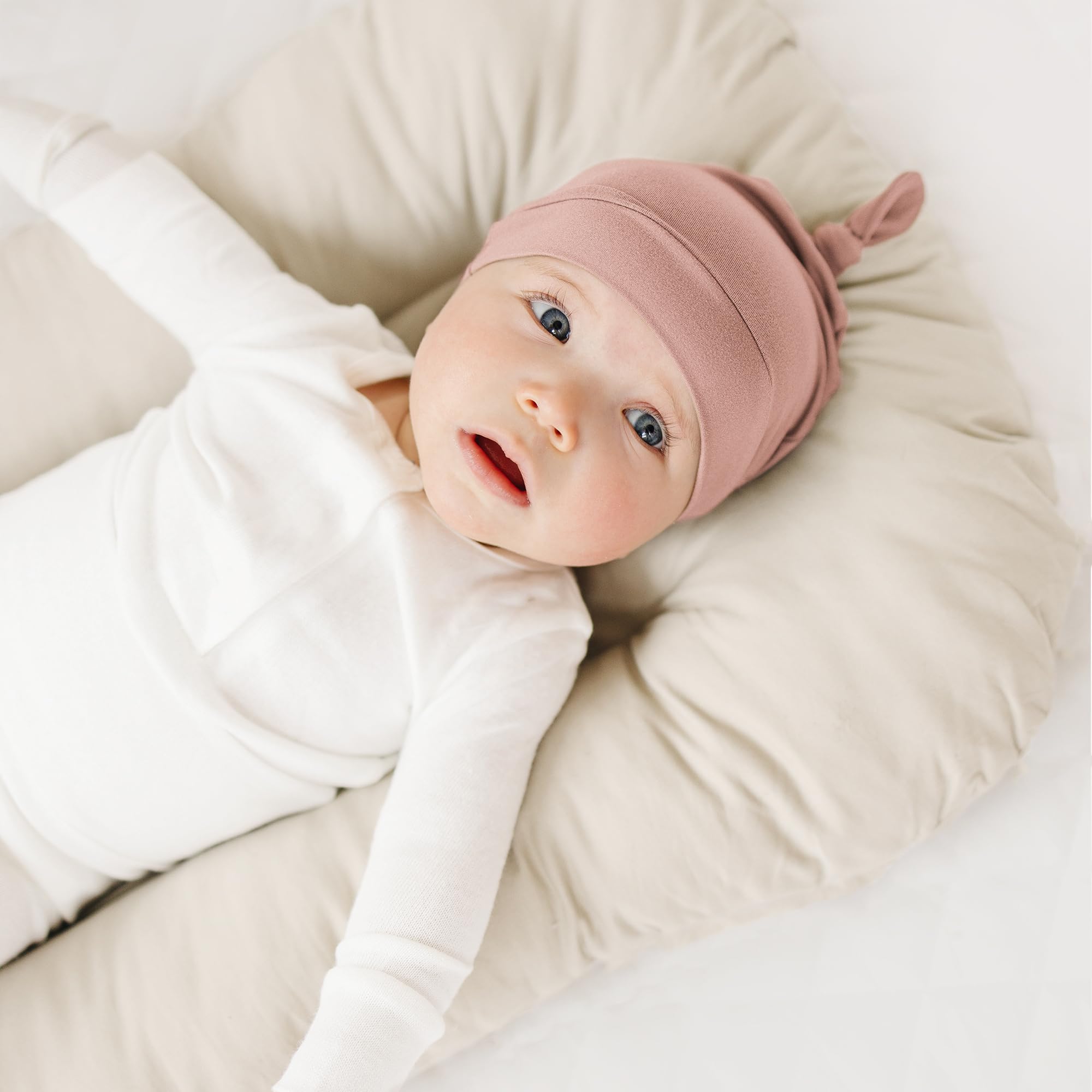 【FIT 0-6 MONTHS】-Our newborn hats suitable for 0-6 Months baby girls and boys. The hat circumference measures approx 13.3 inches. You can measure head circumference before ordering the baby hat. And put a cute knot on the top to suit baby's head.