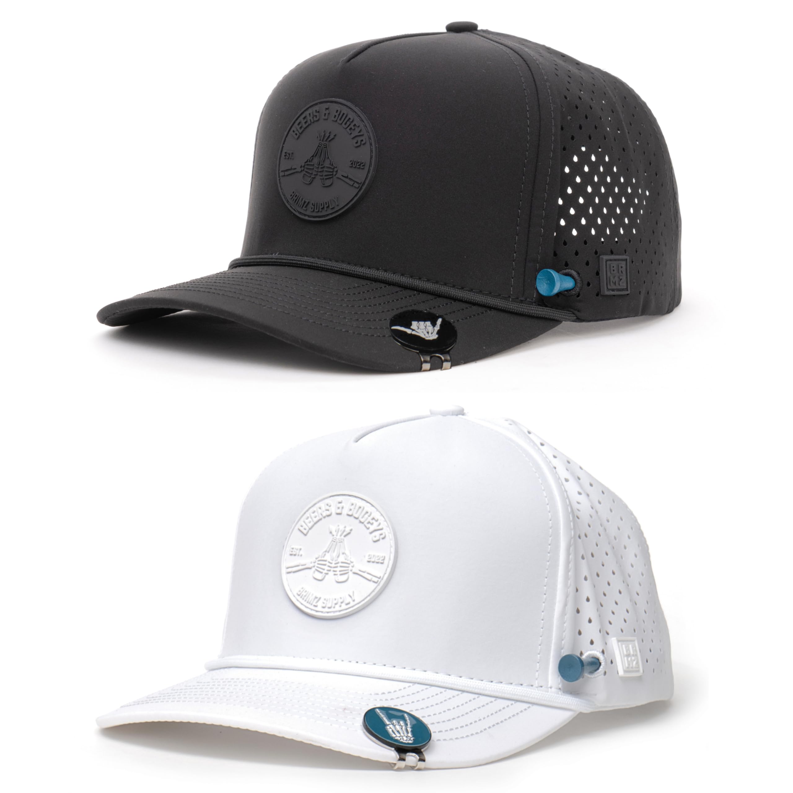 CLASSIC DESIGN, MODERN PERFORMANCE: The five-panel baseball cap style is complete with a magnetic ball marker that attaches to the hat, a hole on the side of the hat to hold your tee, 3D rubber mold patches, and made with a polyester spandex blend with a built-in sweat band for superior sweat resistance, flex-fit hold, and ventilation.
