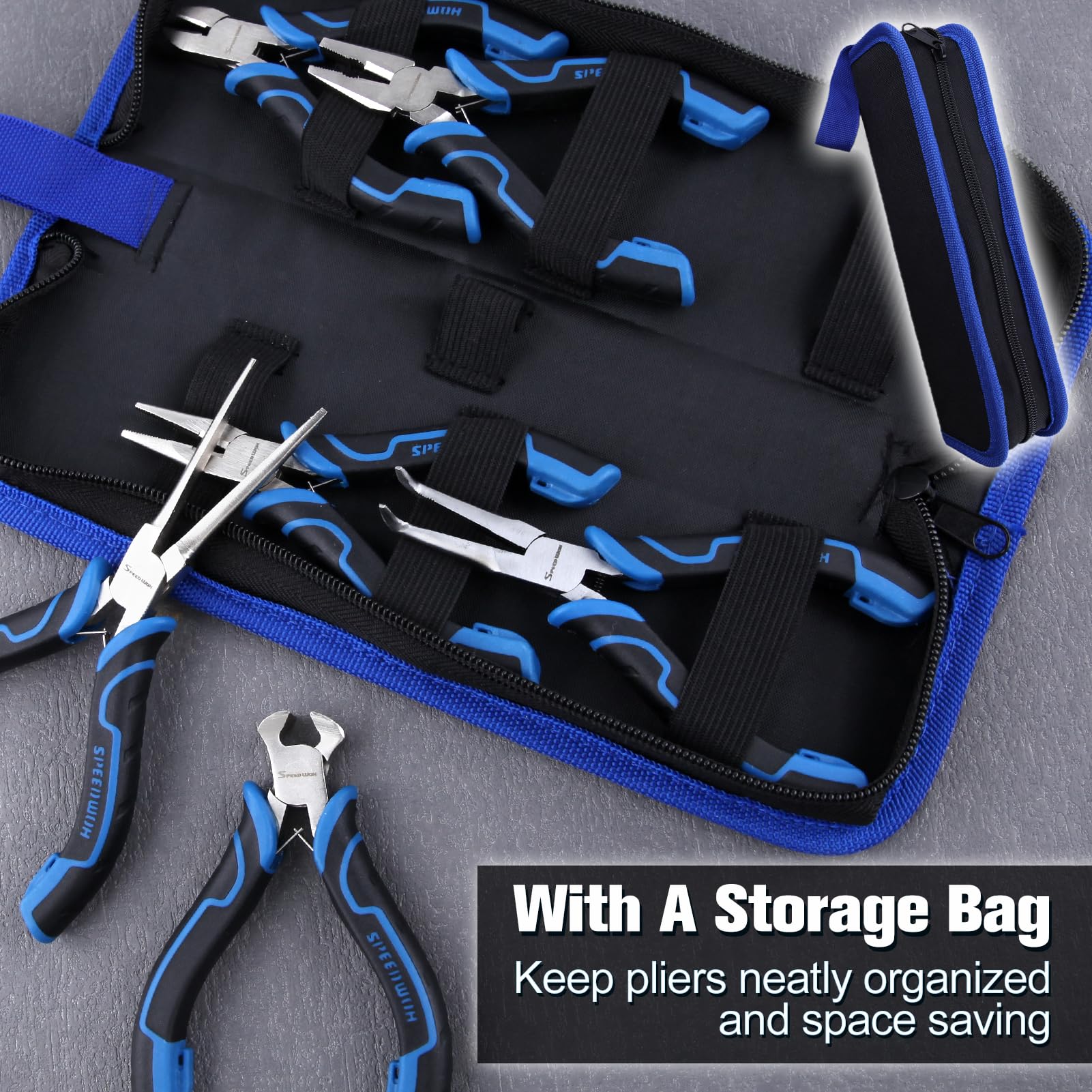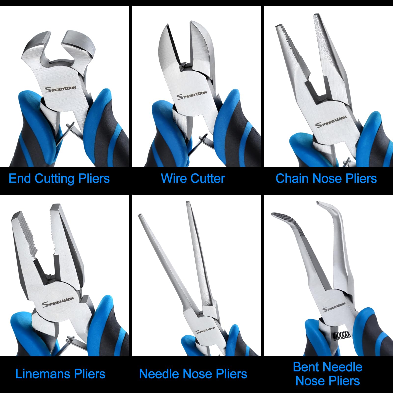 【WHAT YOU GET】1pc Bent Needle Nose Pliers, 1pc Needle Nose Pliers, 1pc Diagonal Pliers, 1pc Long Nose Pliers, 1pc End Cutting Pliers, 1pc Linesman Pliers, 1pc Storage Pouch is easy to store and carry.