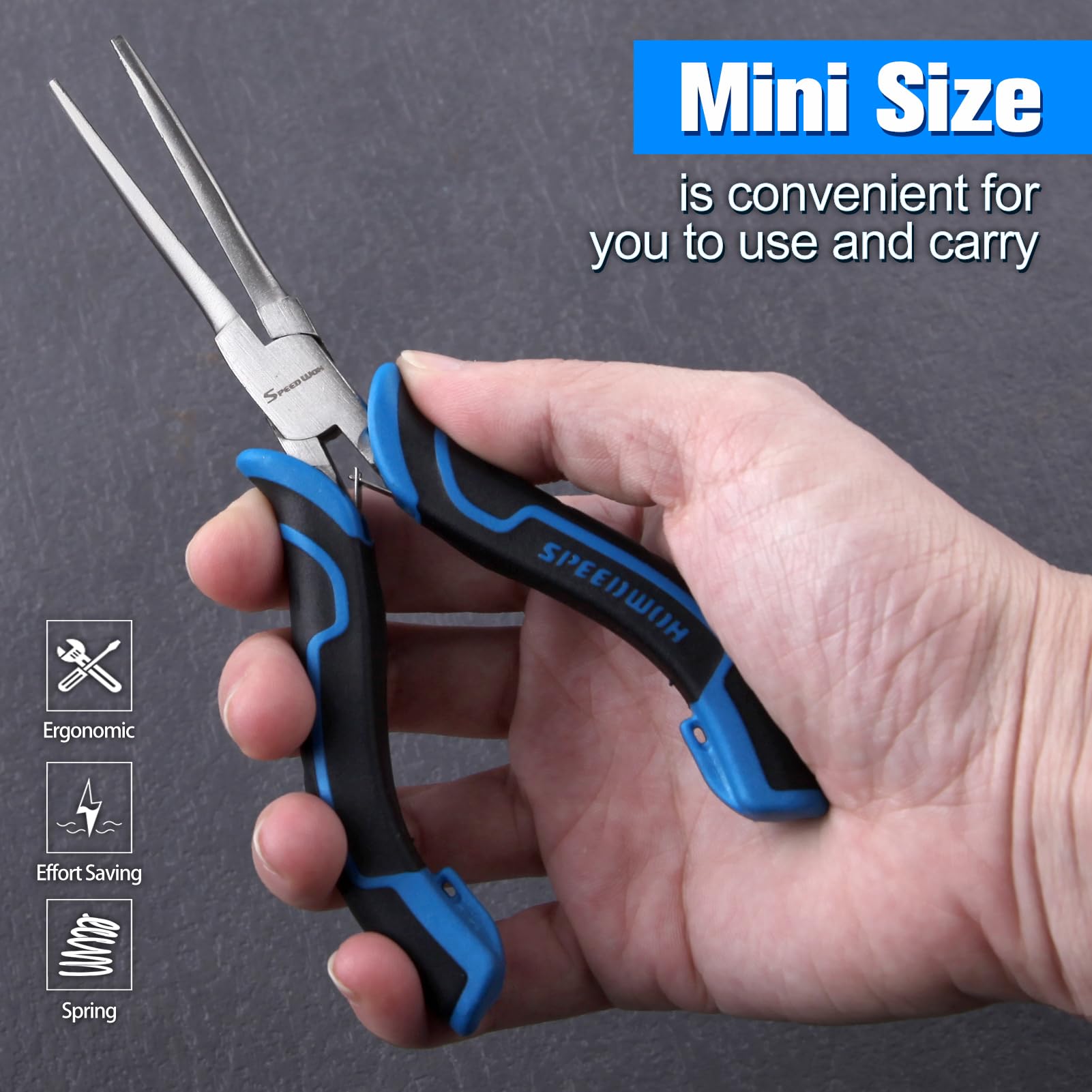 【DESIGN】Ergonomic Bi-color TPR handle for anti-slip and comfortable grip. Double leaf springs action reduces hand and wrist fatigue for easy one-handed operation. Serrated jaw provide excellent gripping power with anti-slip when gripping.