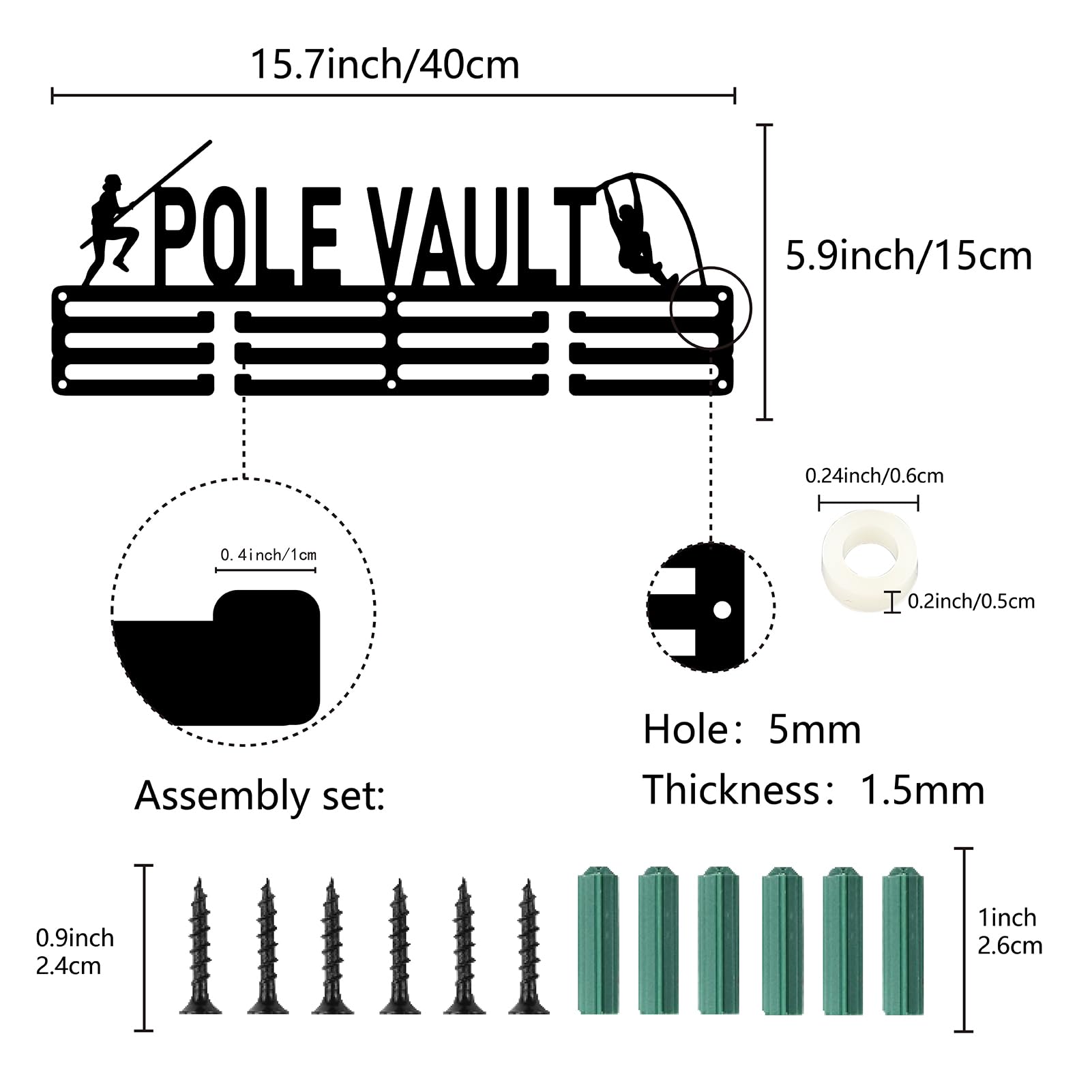 [POLE VAULT MEDAL HOLDER]: The design of this medal hook is a pattern of pole vault, vividly showing the graceful postures of the athletes on the field. Your success deserves to be shown in a special place. We have designed this medal hook for you so that you can proudly display your medals, show everyone how good you are, and remind yourself how great you are.