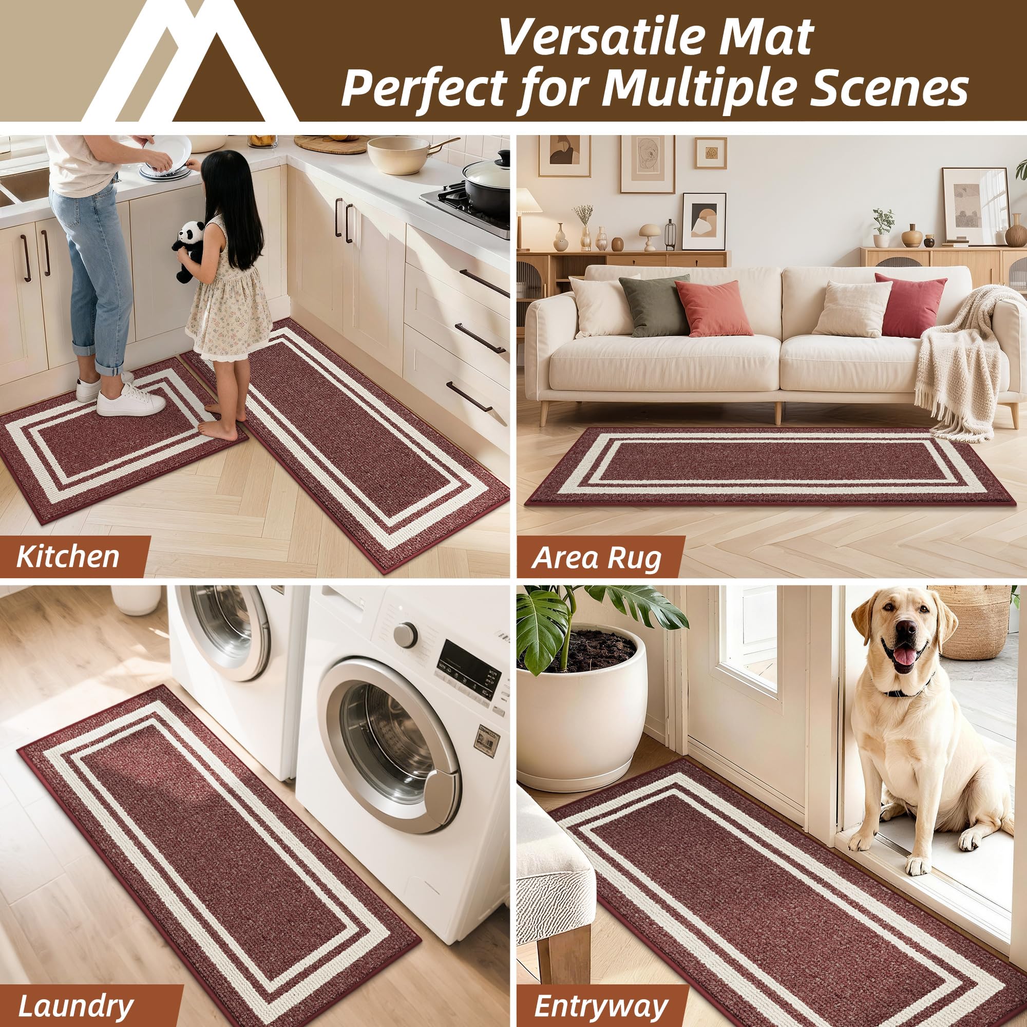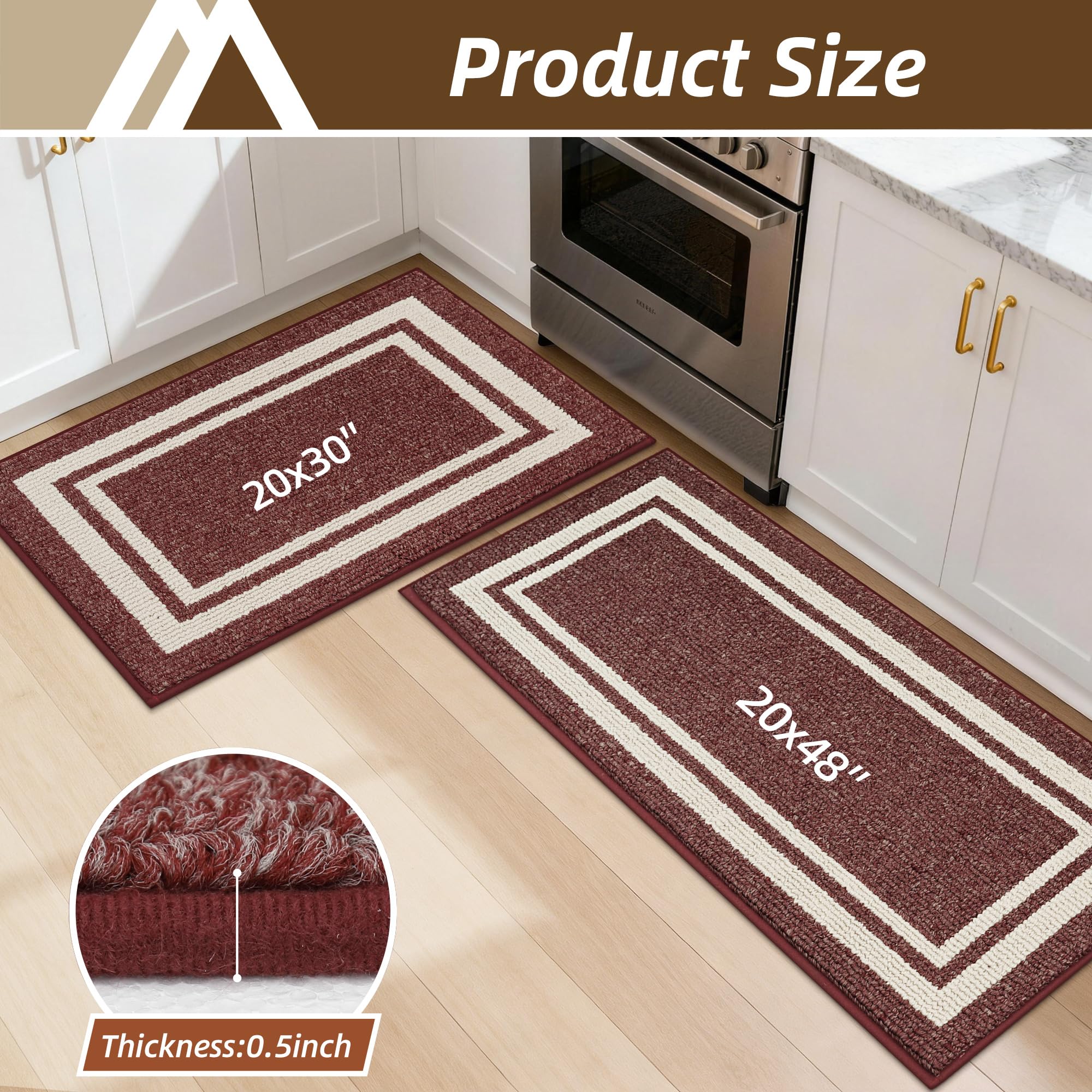 Durable & Thick Kitchen Mats: As a rug used in high traffic cooking areas, large size kitchen rug is a great way to keep your kitchen clean and tidy. Great stain-resistant properties protect the floor from oil, dampness, sauces or food particles.Rug and mat suitable for kitchen
