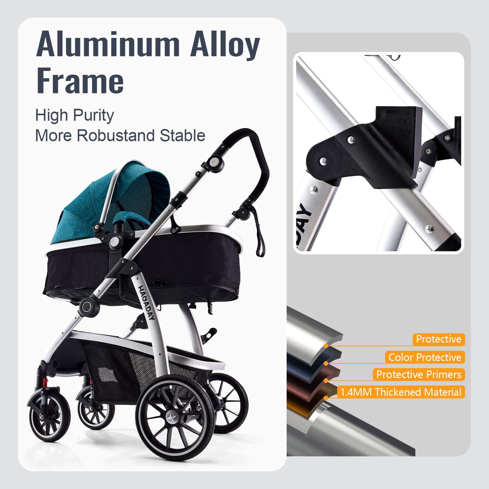 SUPERIOE BABY CARRIAGE: The Hagaday baby stroller surface is made from baby-friendly fabric that is skin-friendly and breathable. The soft cushion in the baby basket ensures comfort, and a foot cover provides warmth during colder weather.