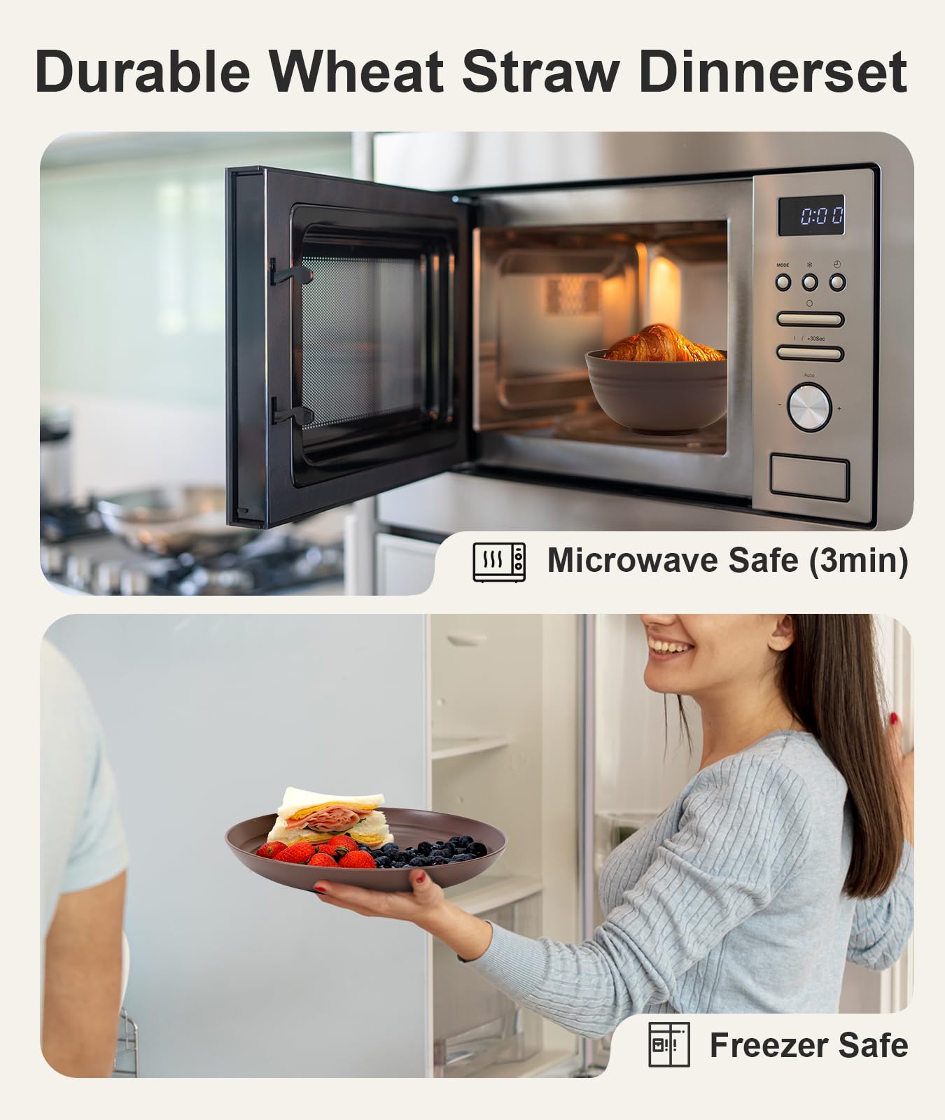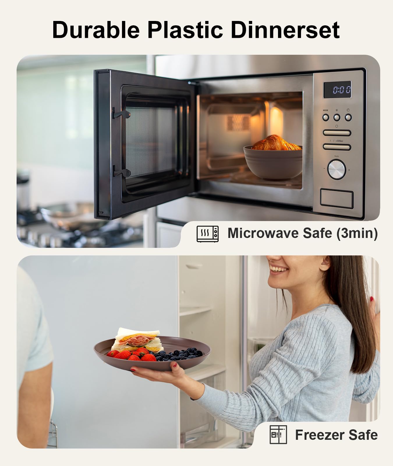 Dishwasher and Microwave Safe: These plates and bowls sets can also go in the fridge or freezer. Offer convenient cleanup and reheating, making them ideal for everyday use