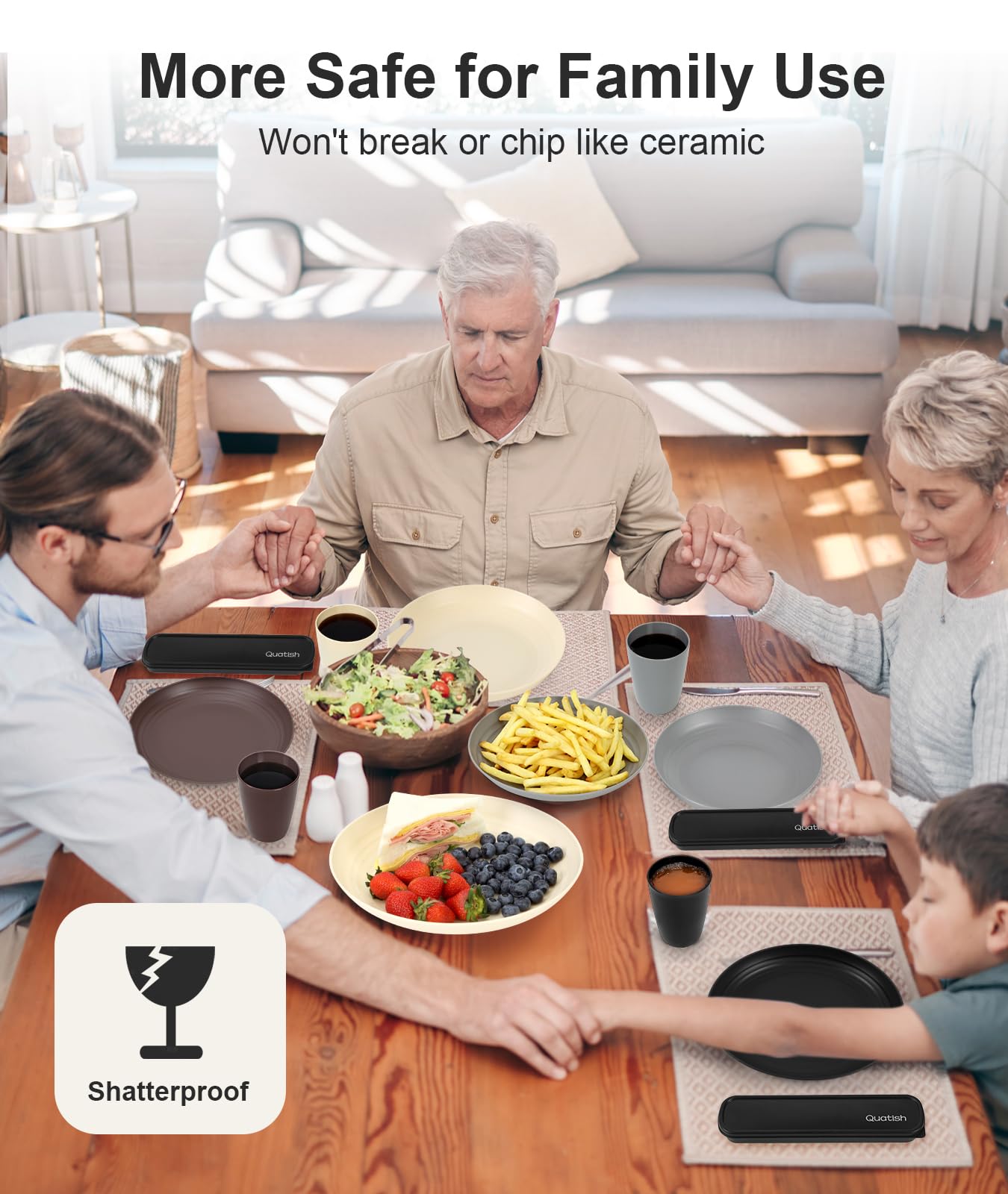 Durable and Kid-Friendly: Nearly unbreakable, shatterproof plastic dinnerware set with raised edges, resistant to chipping, scratches, and wear-related damage. Ideal for camping, RVs, beach houses, and safe for toddlers and children