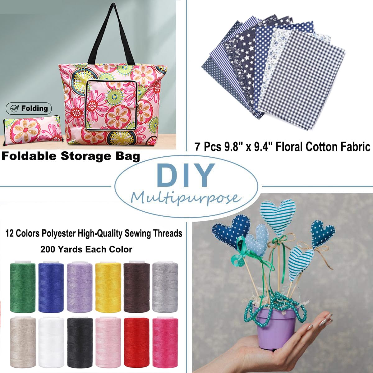 【The Perfect Home Sewing Machine Set】It has the accessories needed for sewing, such as a Foldable Storage Bag, Cotton Fabric, and 12 colors of polyester sewing threads set for the sewing machine, etc. You don't need to spend extra money and time to purchase these accessories separately, as long as you purchase this sewing machine set, you can easily get them! Please read the manual and watch the guidance video before use!