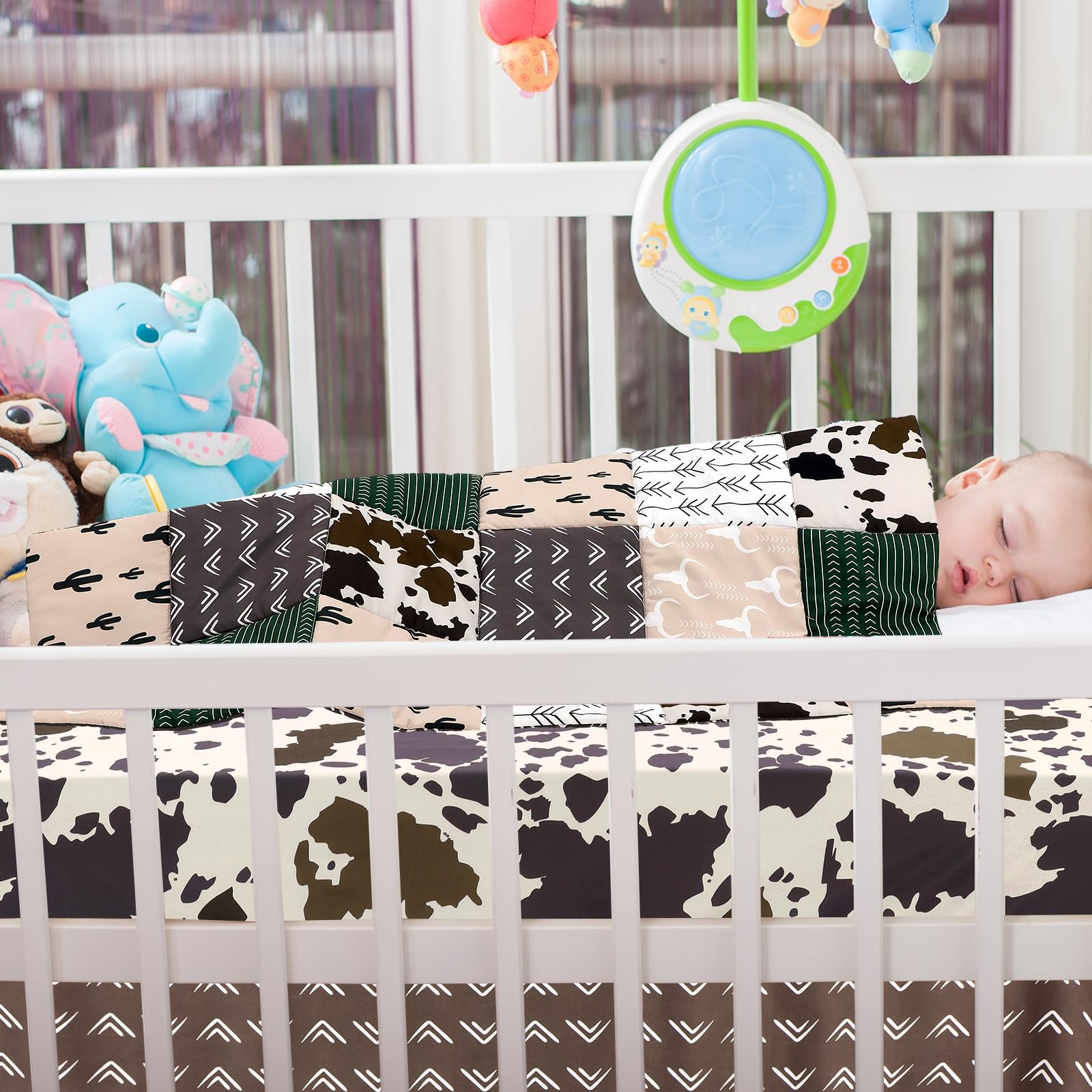 Design of the Wild West: add a cute atmosphere to your baby's room with our cowboy baby crib bedding set; The brown and green color palette not only adds visual interest but also stimulates your baby's senses for an exciting bedtime experience