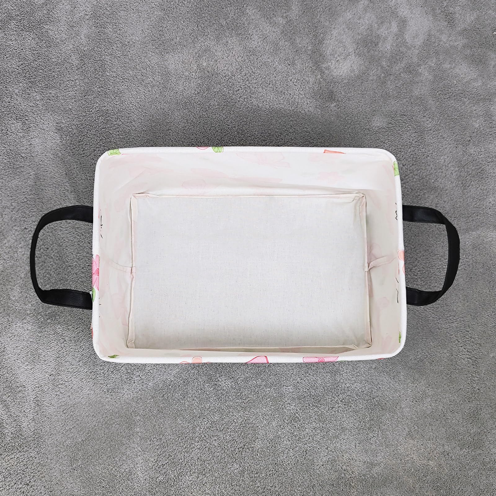 Material: Polyester canvas linen and PE environmental protection waterproof coating. This storage basket easy to stand and foldable, Waterproof PE coating inner, which to achieve the effect of moisture resistant.