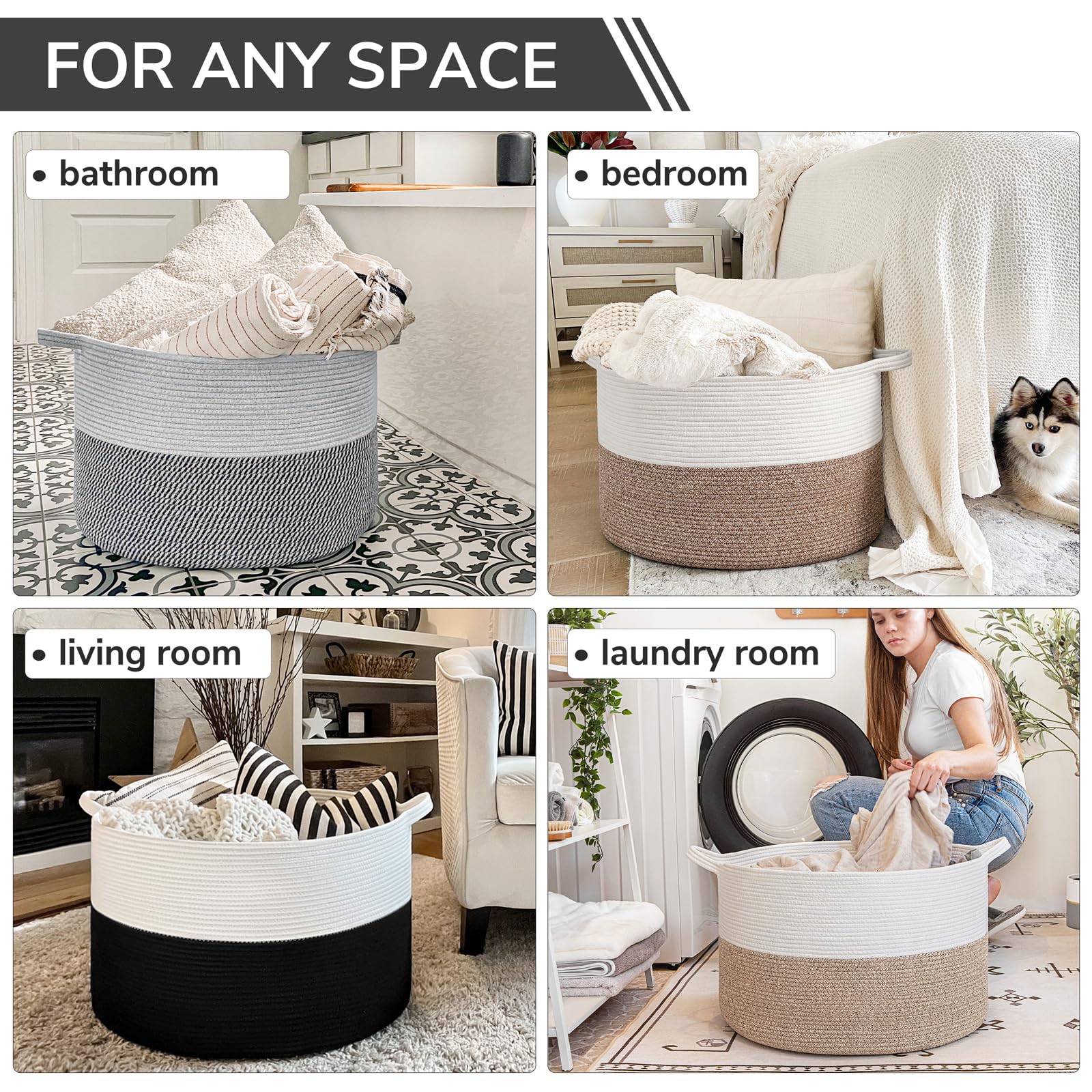 Neutral Design Matches Any Decor: Our white and black decorative basket seamlessly blends into the laundry room, bedroom, bathroom, or living room space. The stylish design is the perfect compliment to modern, rustic, boho, or farmhouse room décor