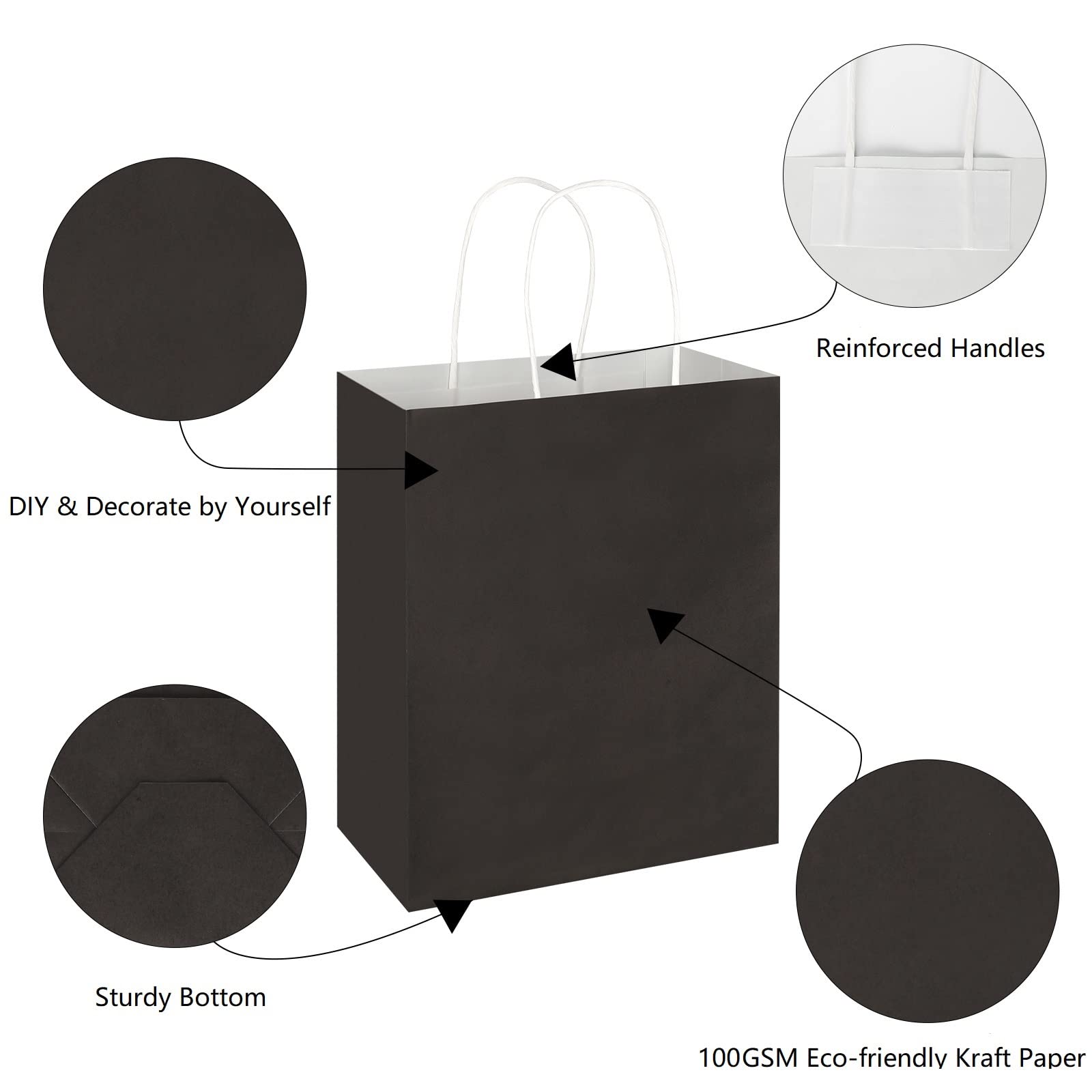 Rugged & Durable: This paper bags are made of 100 GSM kraft paper, which is more durable and can withstand a weight of 8 pounds, so you needn't worry about the risk of being torn.