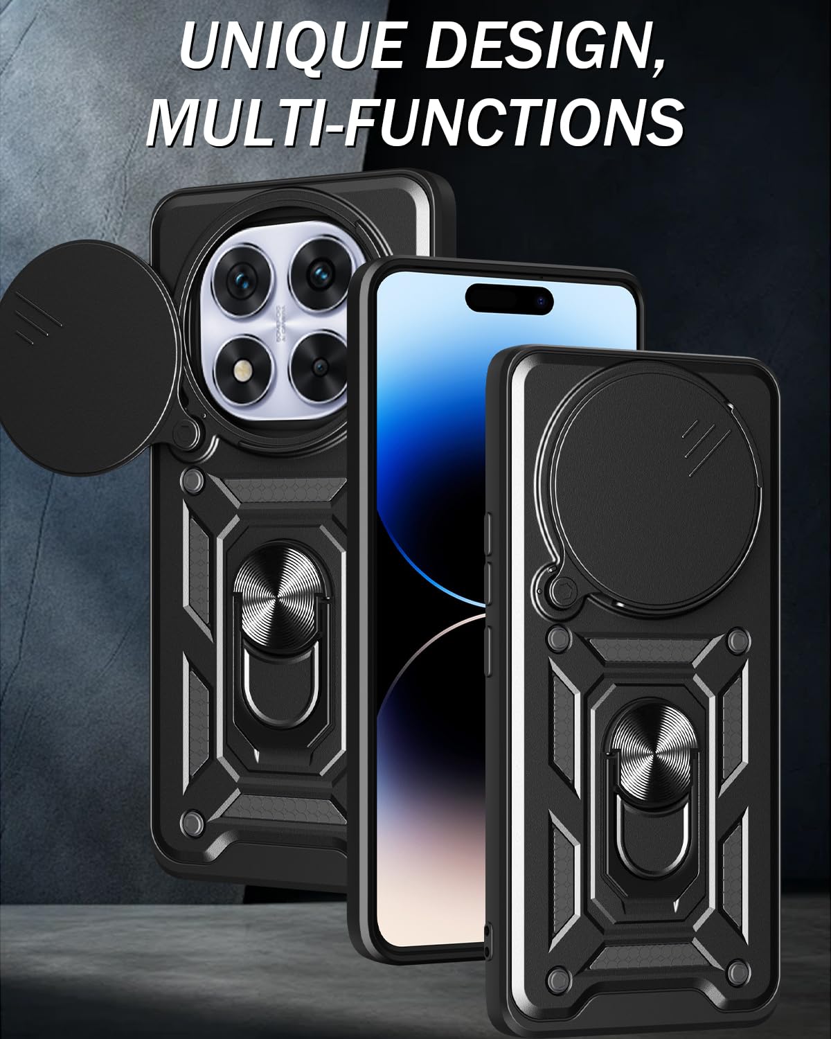 【Multi Function】360 Degree Rotating Metal Ring Kickstand supports to work with magnetic car mountand .The Ring at back cover can also work as kickstand to hold up your Xiaomi redmi Note 14 Pro Plus 5G Phone while you are warching movie or video.