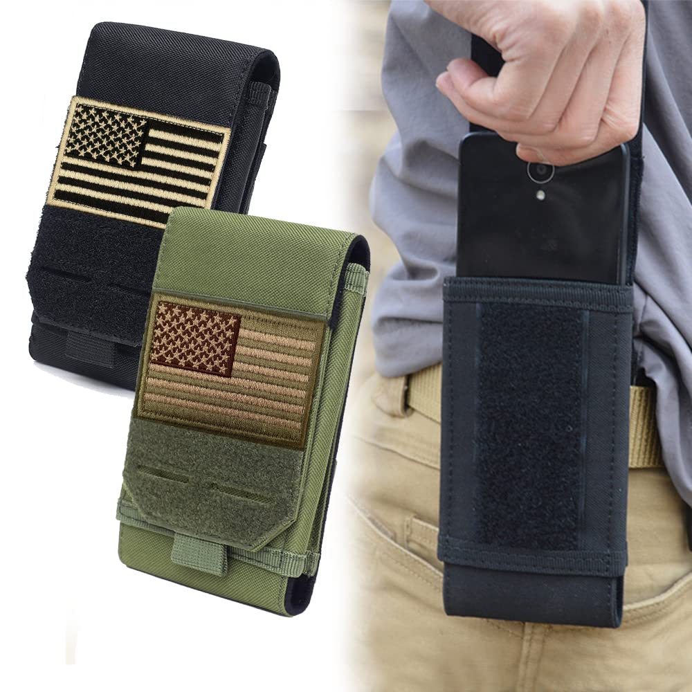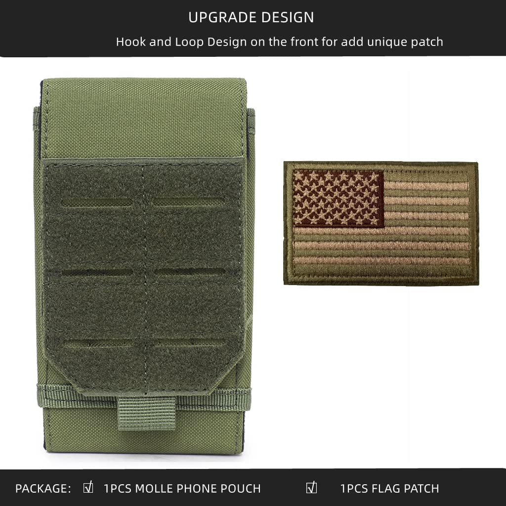 ➤UPGRADE DESIGN: Hook and Loop Design on the front for add unique patch, Can paste a variety of personality Patches, Package Included: 1 pack Molle Phone Pouch + 1 pack US Flag Patch.
