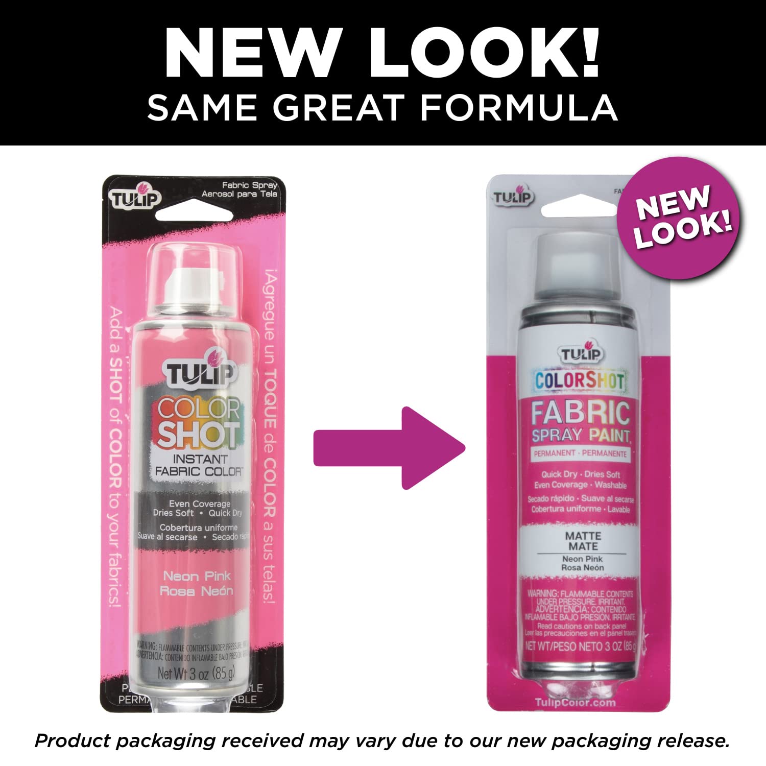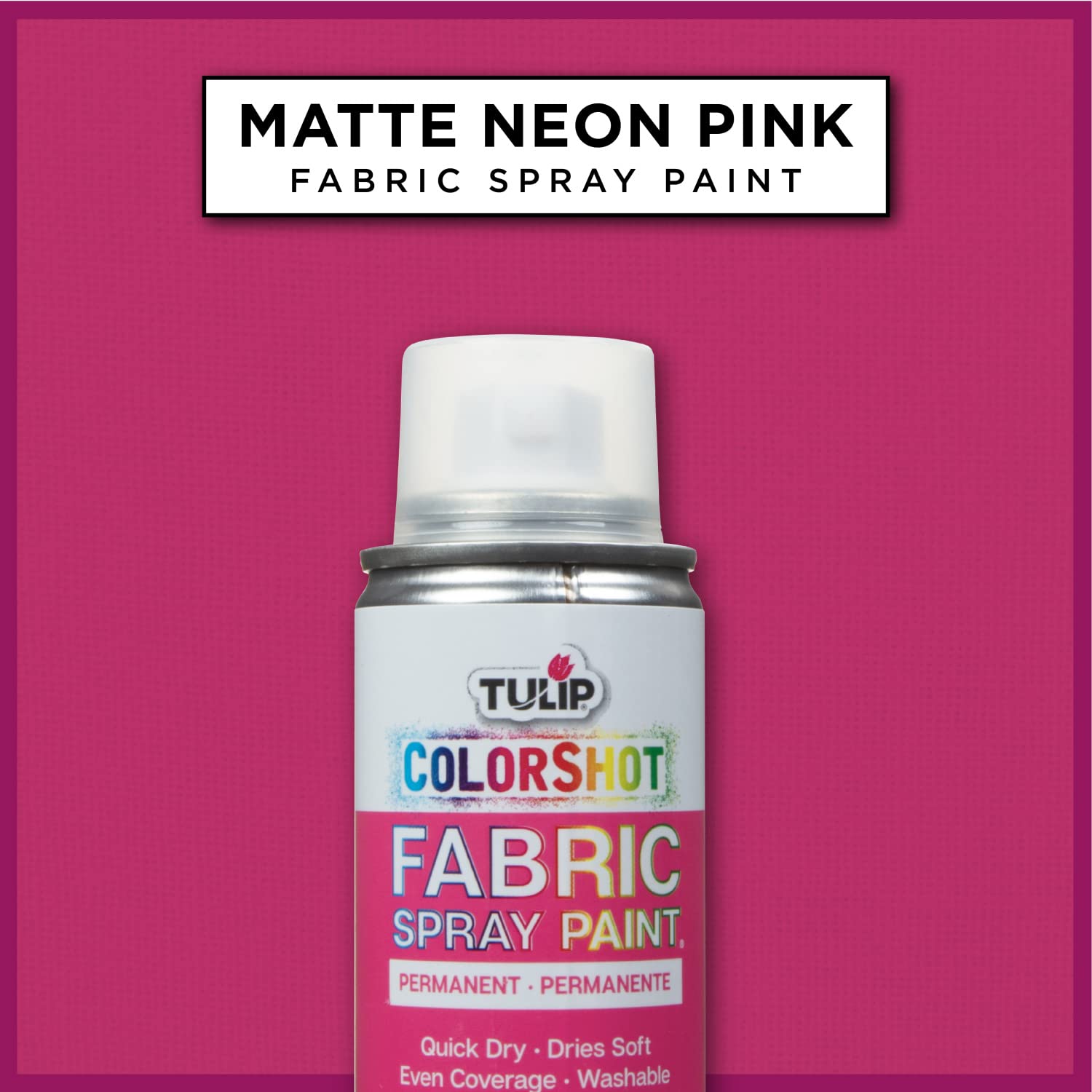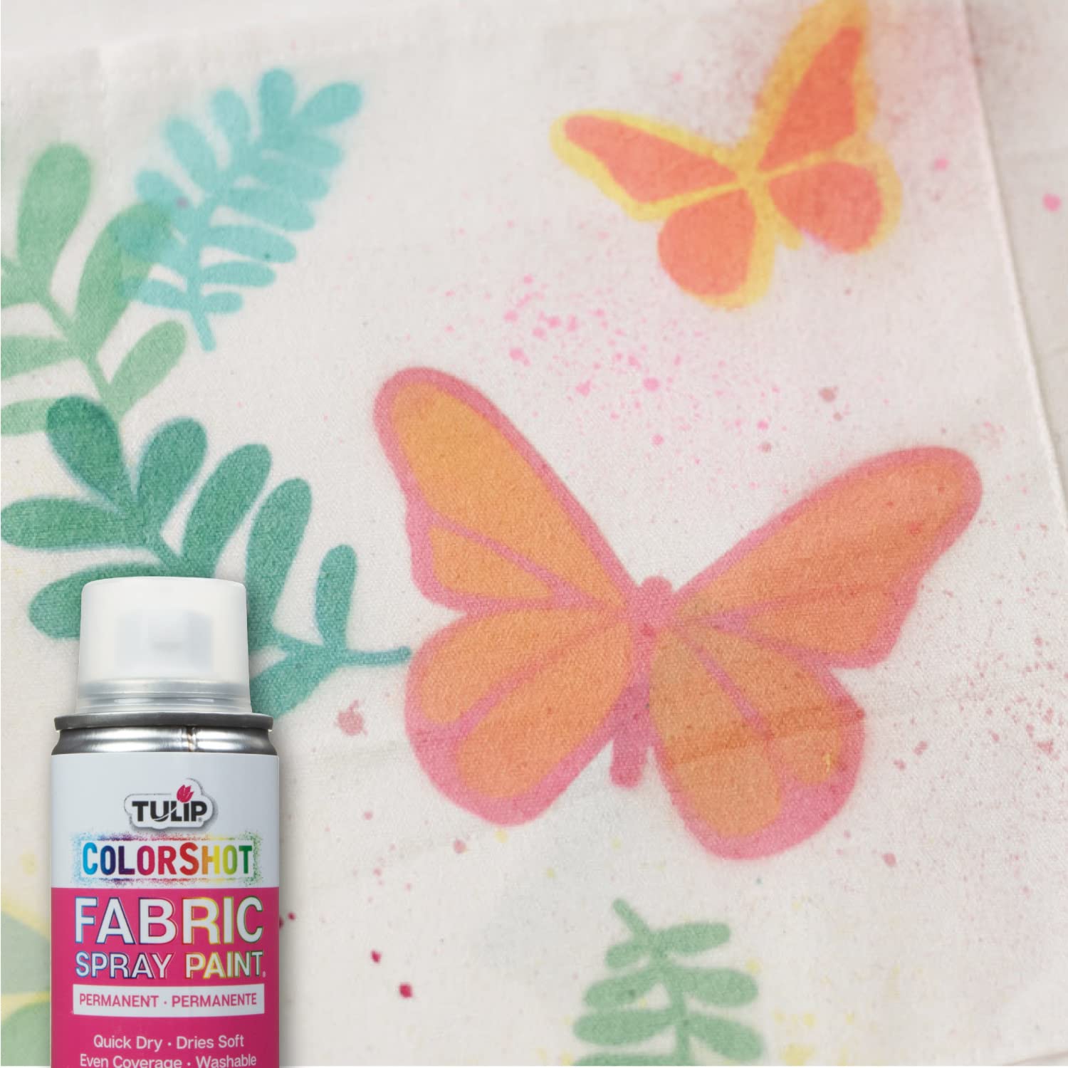 Give your fabrics an instant shot of beautiful, washable, permanent color with Tulip ColorShot Instant Fabric Color. It’s perfect for a dash of color or for allover even coverage, and works wonderfully with stencils and monograms! ColorShot is so easy to use … just shake, aim and spray for gorgeous color in classic, neon and shimmer shades that dry super quick and soft to the touch, without drips or splatters. And it is so easy to blend colors, too! So when your apparel and home décor fabrics need a color renew, refresh or redo, add maximum color appeal with Tulip ColorShot Instant Fabric Color! Give your fabrics an instant shot of beautiful color with this easy to use fabric spray paint!