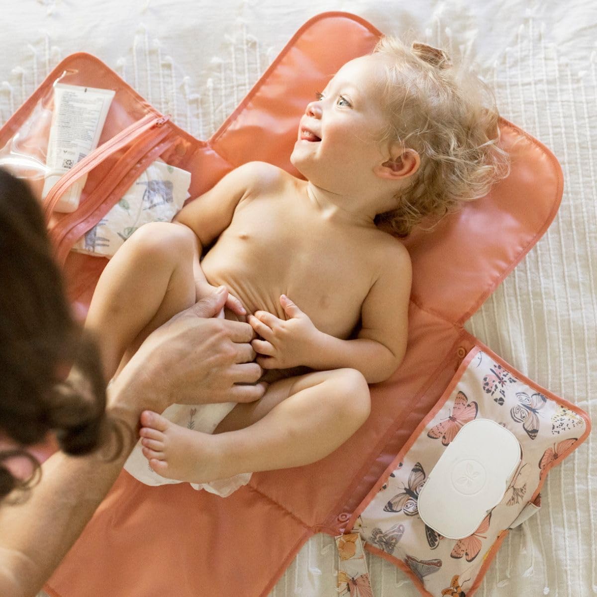 TRAVEL CHANGING STATION: Turn any surface into a clean, comfy spot for diaper changes. The baby-changing mat keeps your baby comfortable and dry—perfect for cars, parks, and travel.