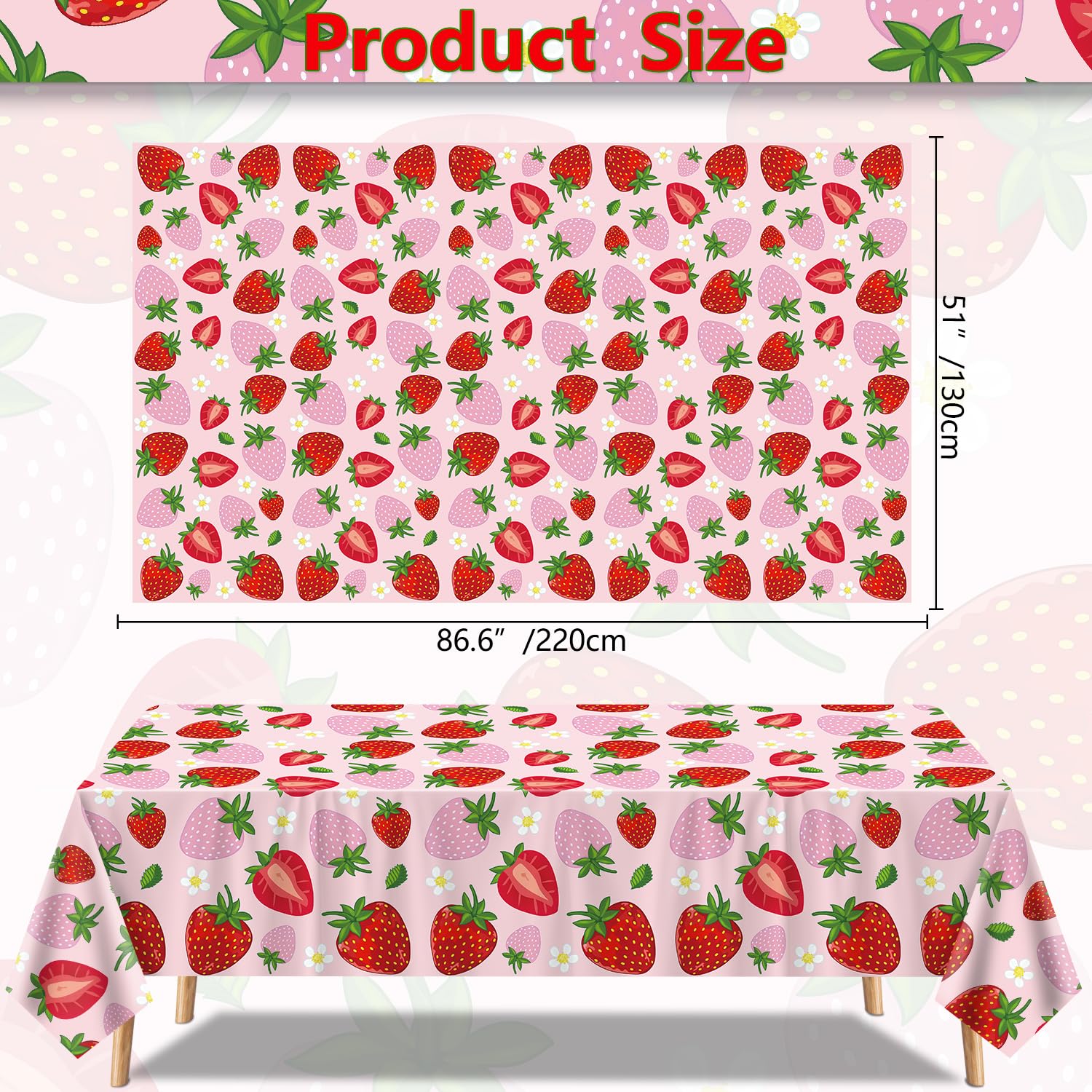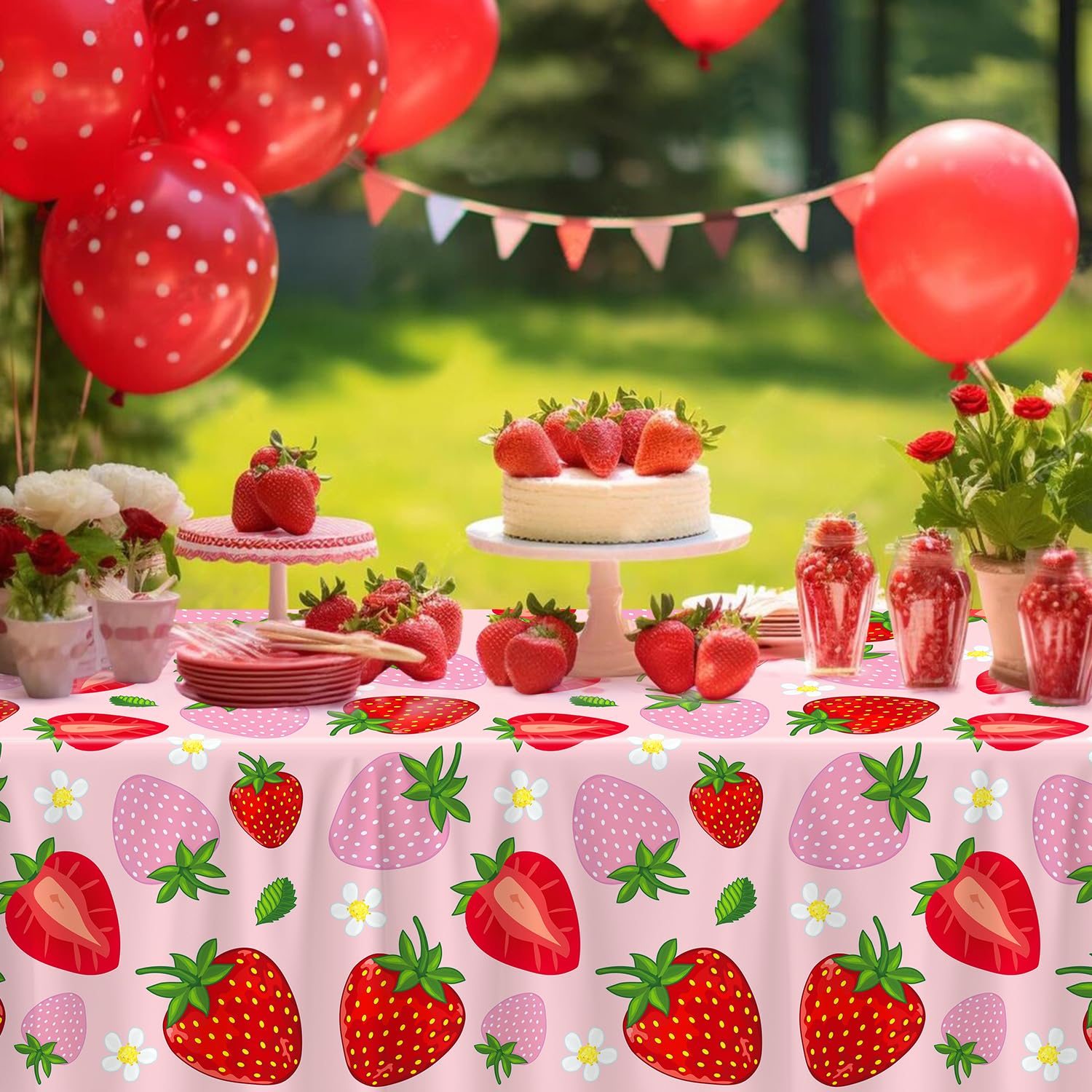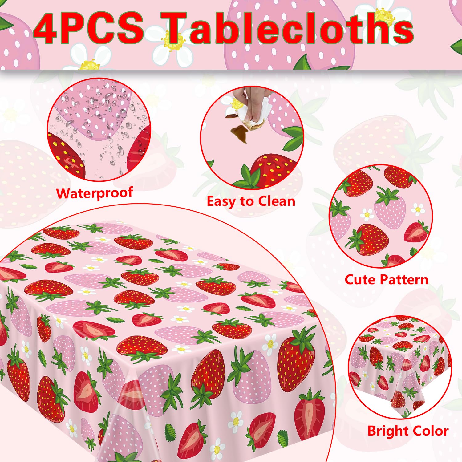Strawberry Party Tableclothes Set: Package Includes 4 pack of Strawberry party tablecloths, designed with sweet Strawberry, leaves, flowers for sweet strawberry theme party. These strawberry birthday table decorations are so cute and colorful that make your strawberry theme party, sweet one birthday party or summer fruit themed party a big hit.
