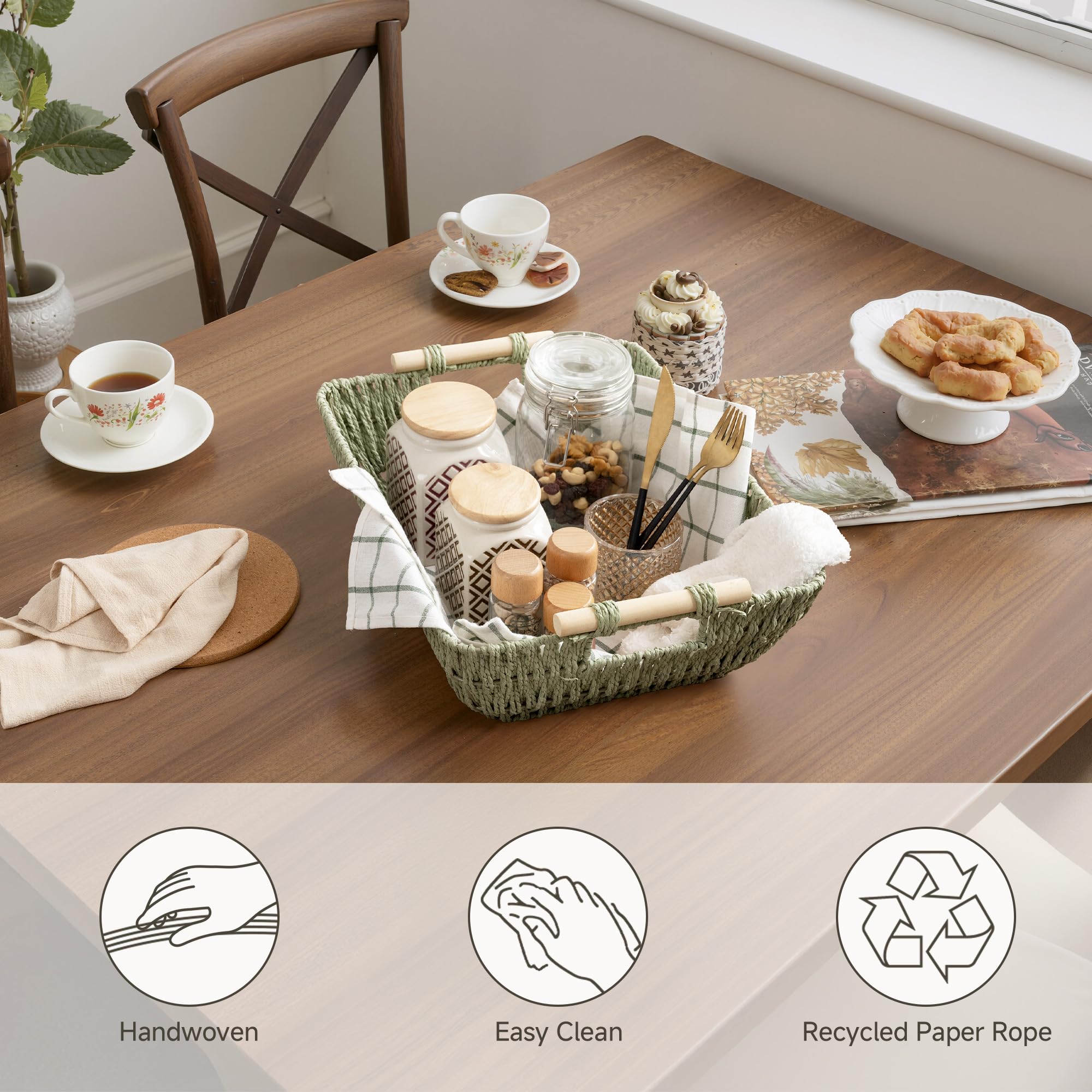 Recycled Material: Made from durable, recyclable paper rope, designed for long-lasting use and easy recycling, combining storage functionality with a commitment to a low-carbon lifestyle.
