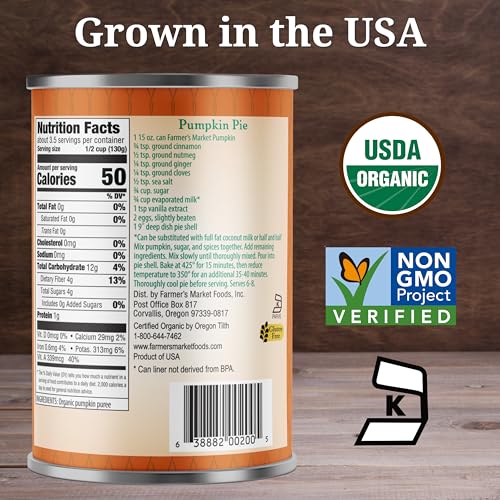 Farmer’s Market Organic Pumpkin Puree is rich, smooth and nutritious. Sustainably & organically grown