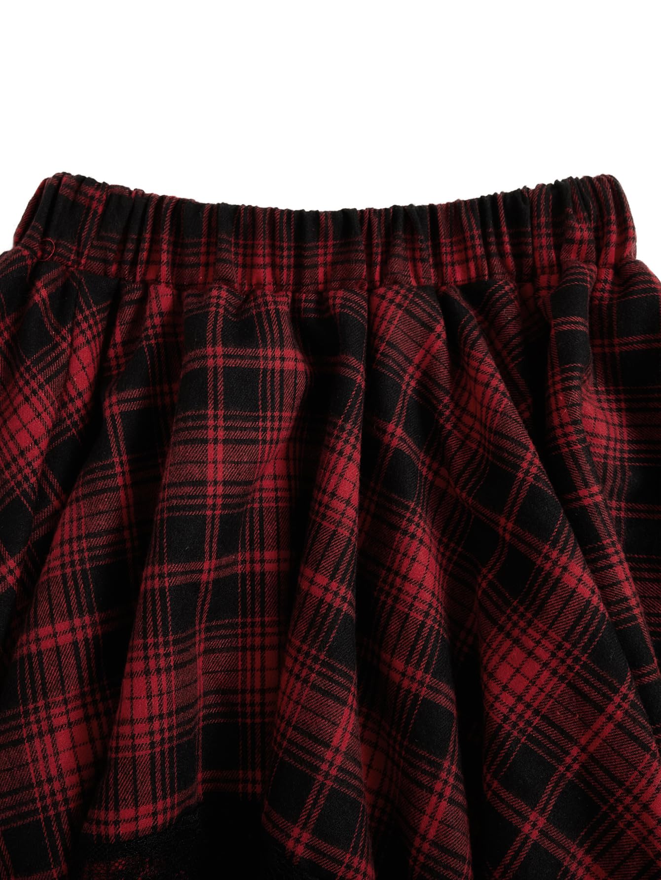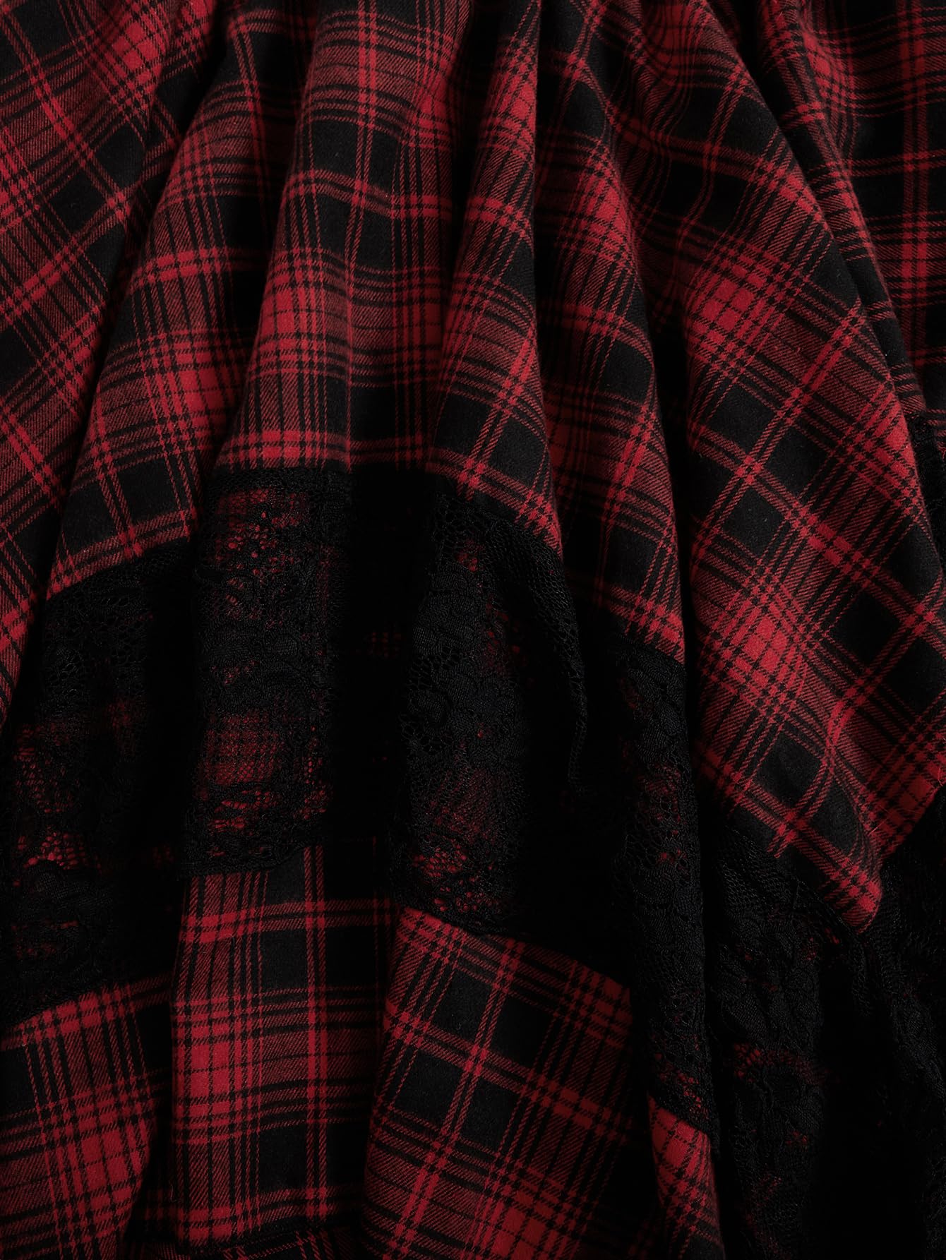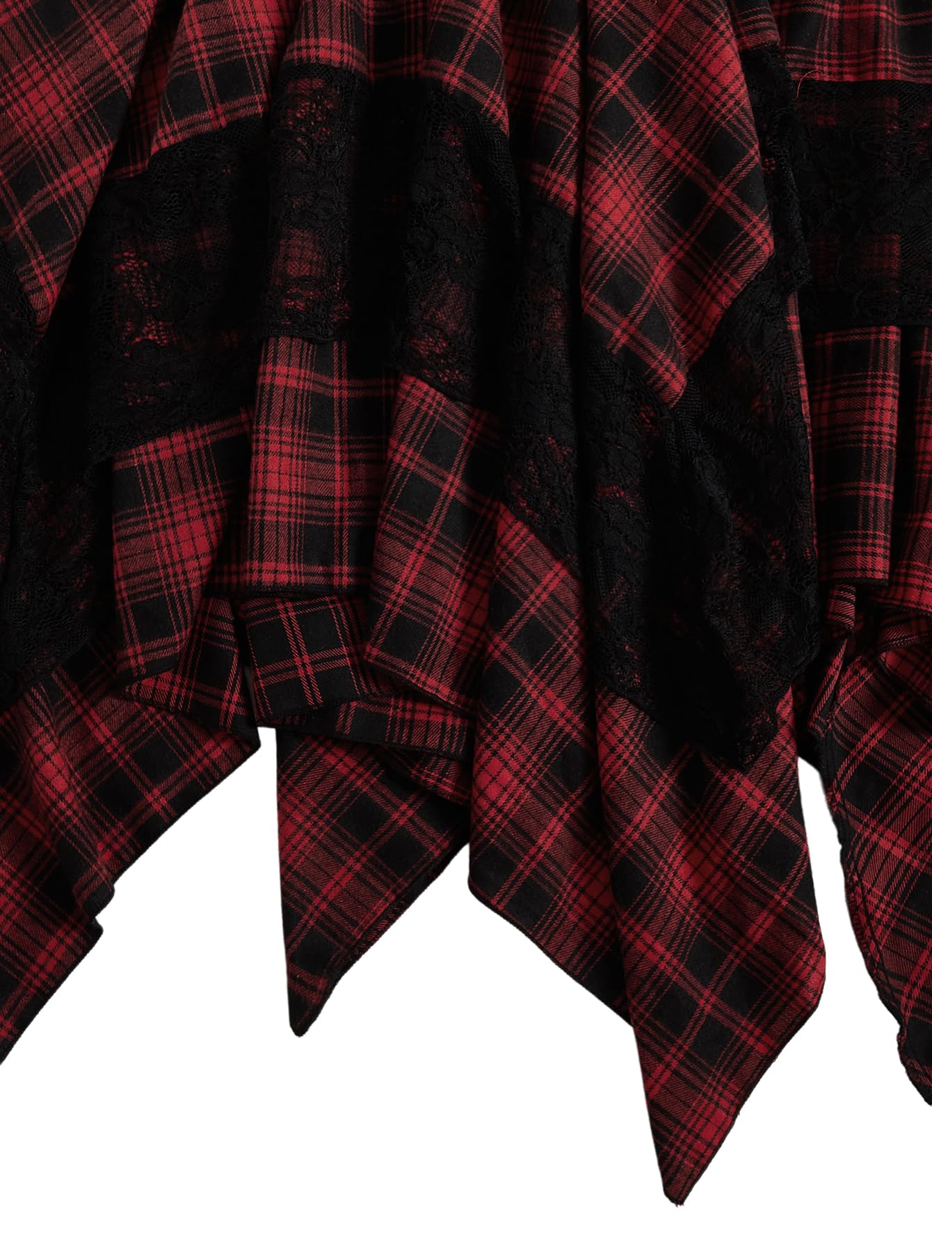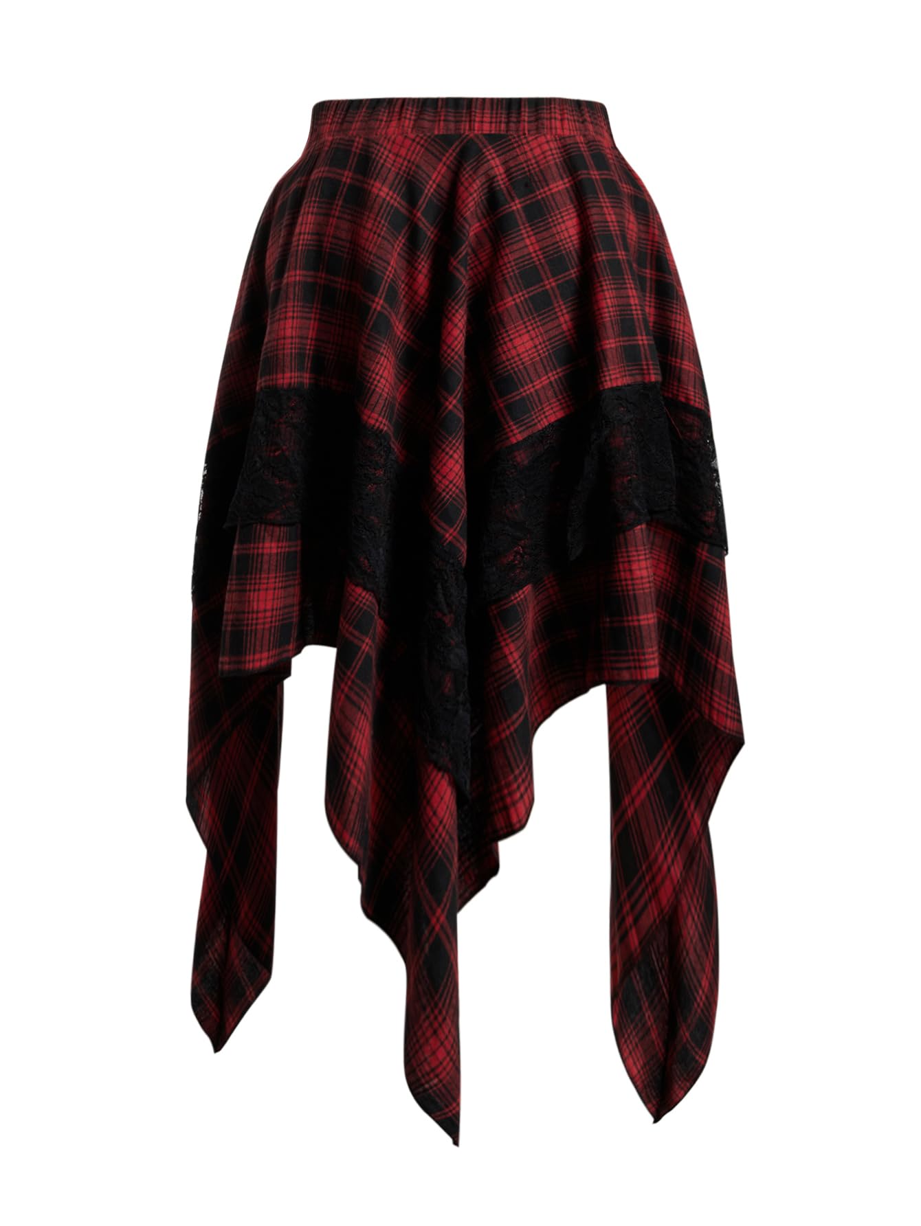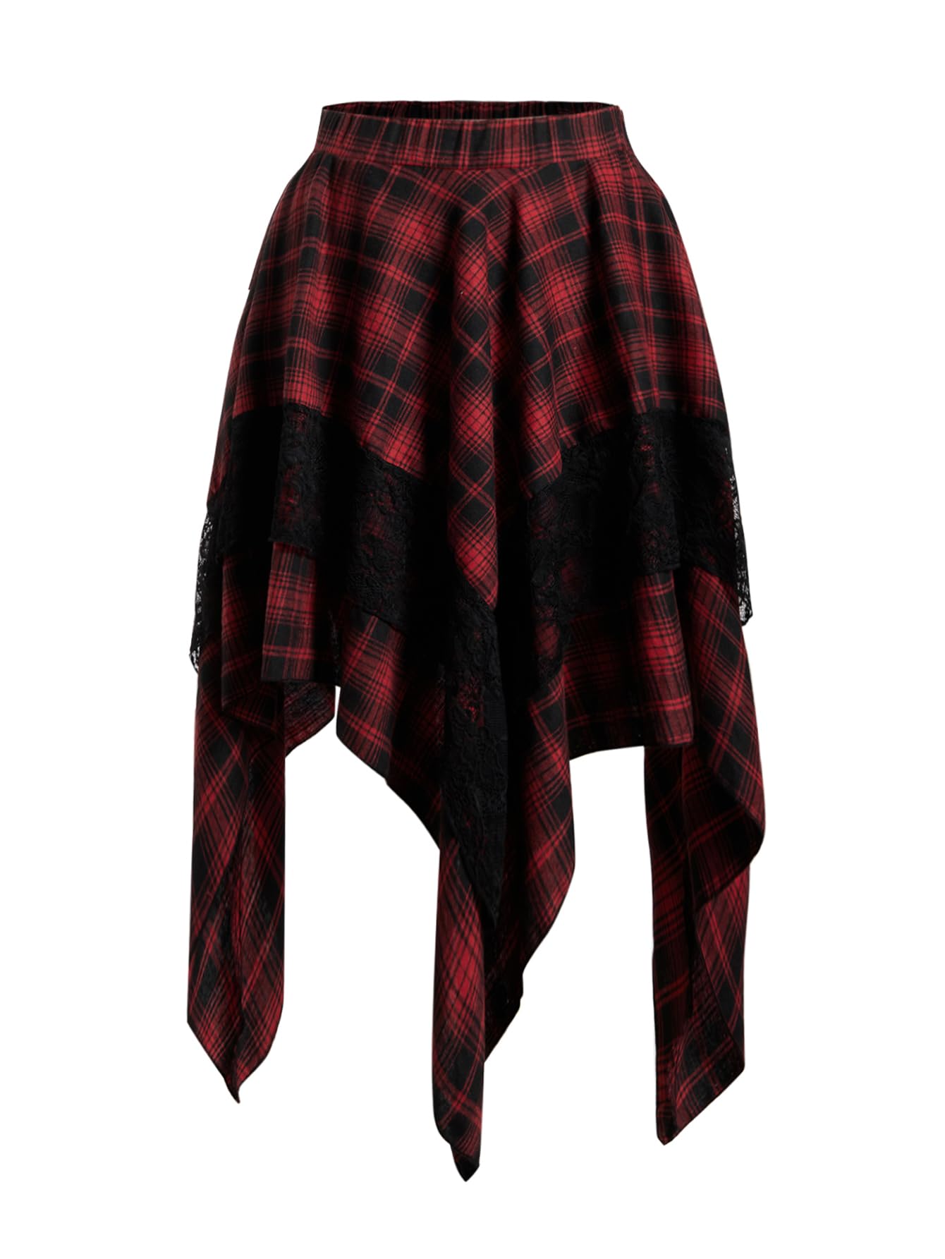 Elastic Waist, Lace Trim, Asymmetrical High Low Hem, A Line, Flowy, Gothic Steampunk Skirt, Casual Midi Skirt