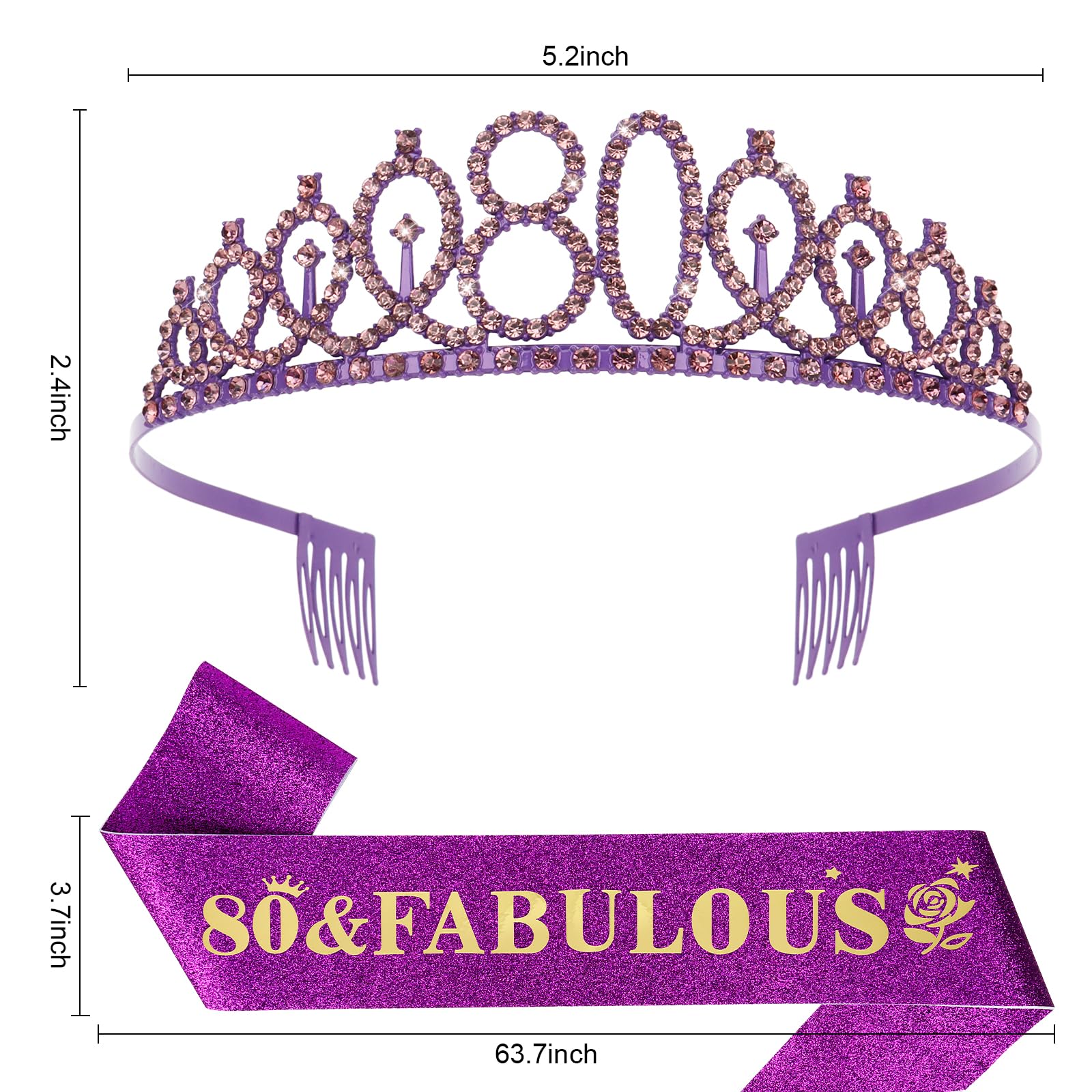 80th Birthday Set: The birthday kit includes 80th sash, rhinestone tiara and a pearl pin. You will be like a queen in your birthday celebration