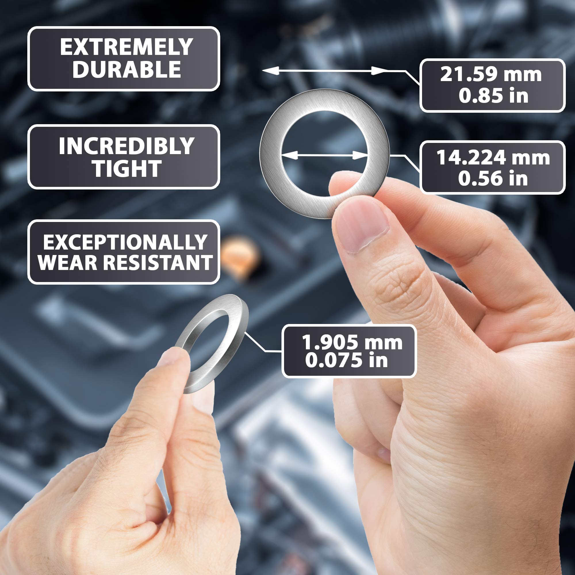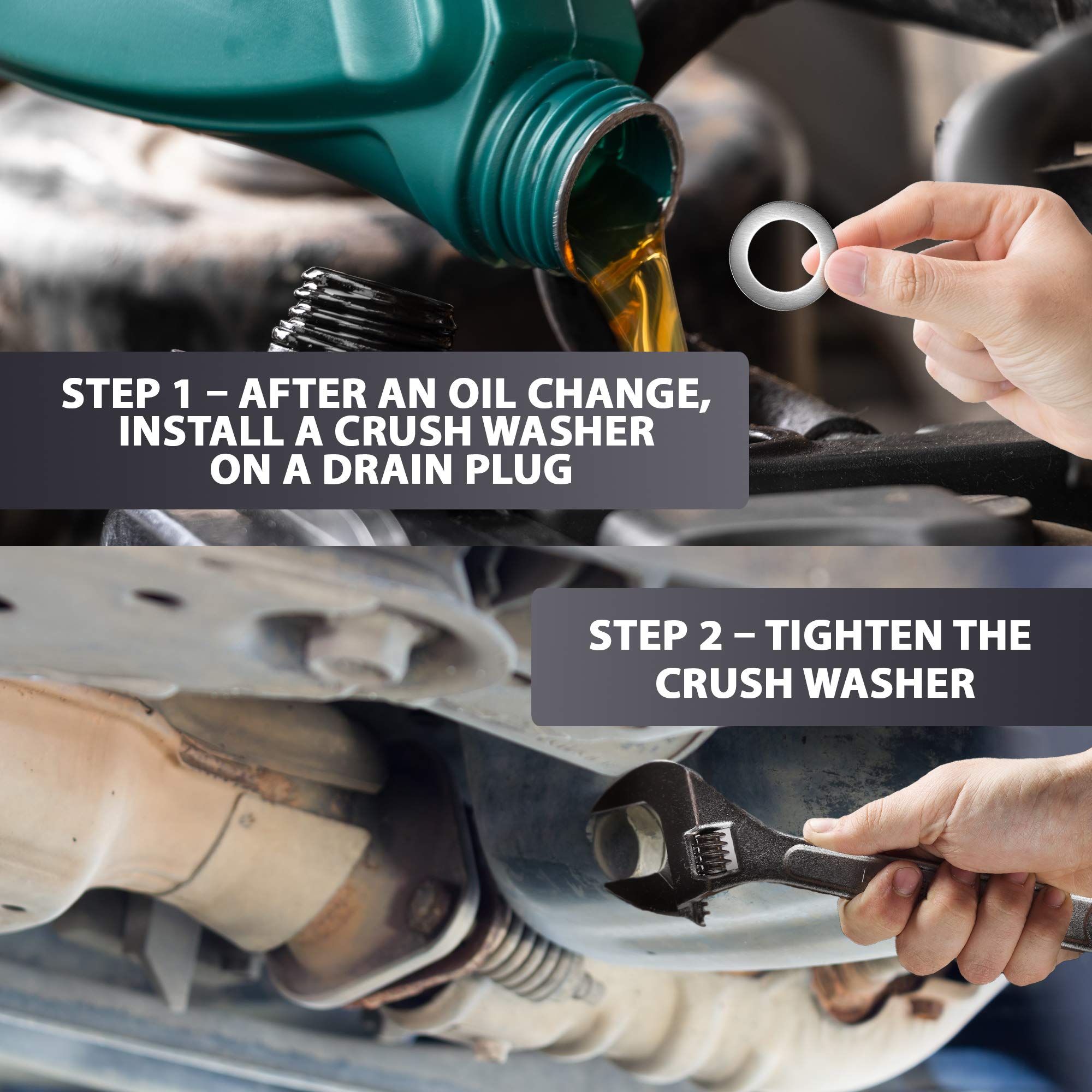 SECURE FIT: our oil drain plug washer fits snug and flush providing a much more tight and secure fit than plastic or rubber seals and boast a much longer lasting sealing capabilities.
