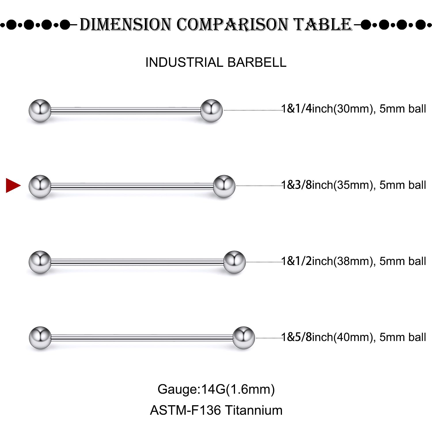 [Size]: 14 Gauge (1.6MM), Length:35MM, Ball size: 5MM.