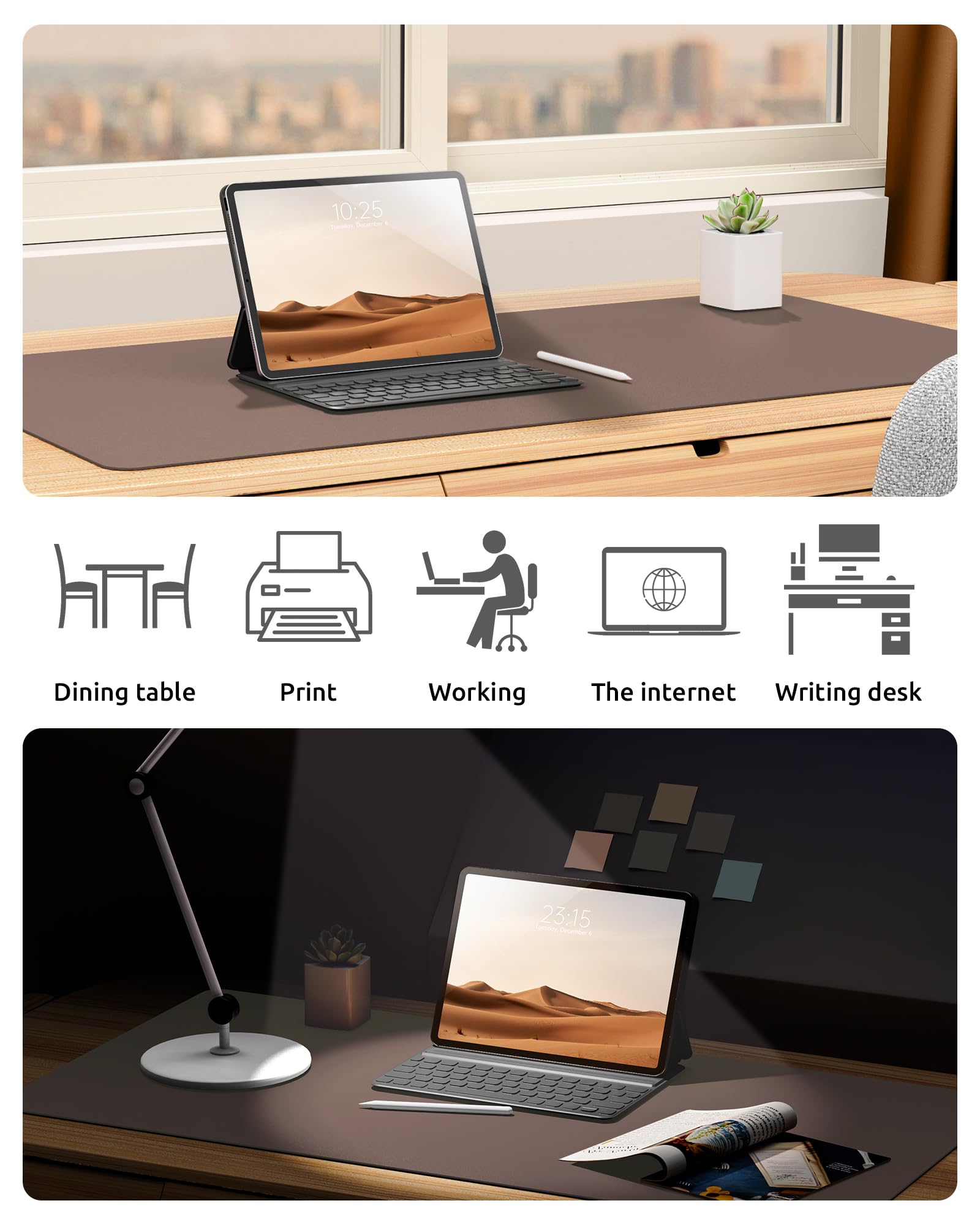 EASY TO CLEAN: Waterproof leather desk pad. Just use cloth for basic clean: liquid, dust, grease and dirt. Wet cloth would be prefer if there are too much dirt in the desk mat.