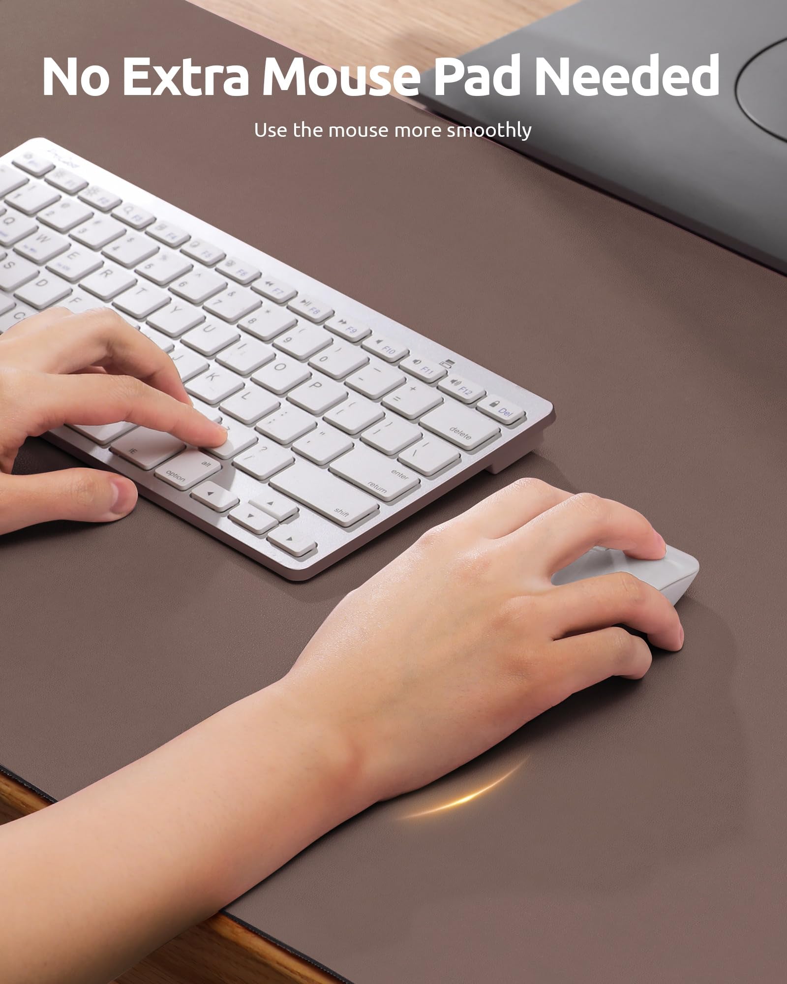LARGE MOUSE PAD: With our large desk pad, say goodbye to small extra mouse pad. Make your desk top looks tiny and professional. With special suede design for back side,increase friction resistance with the desktop, Non slip. The friction resistance is increased by 70% than that of double-sided leather.