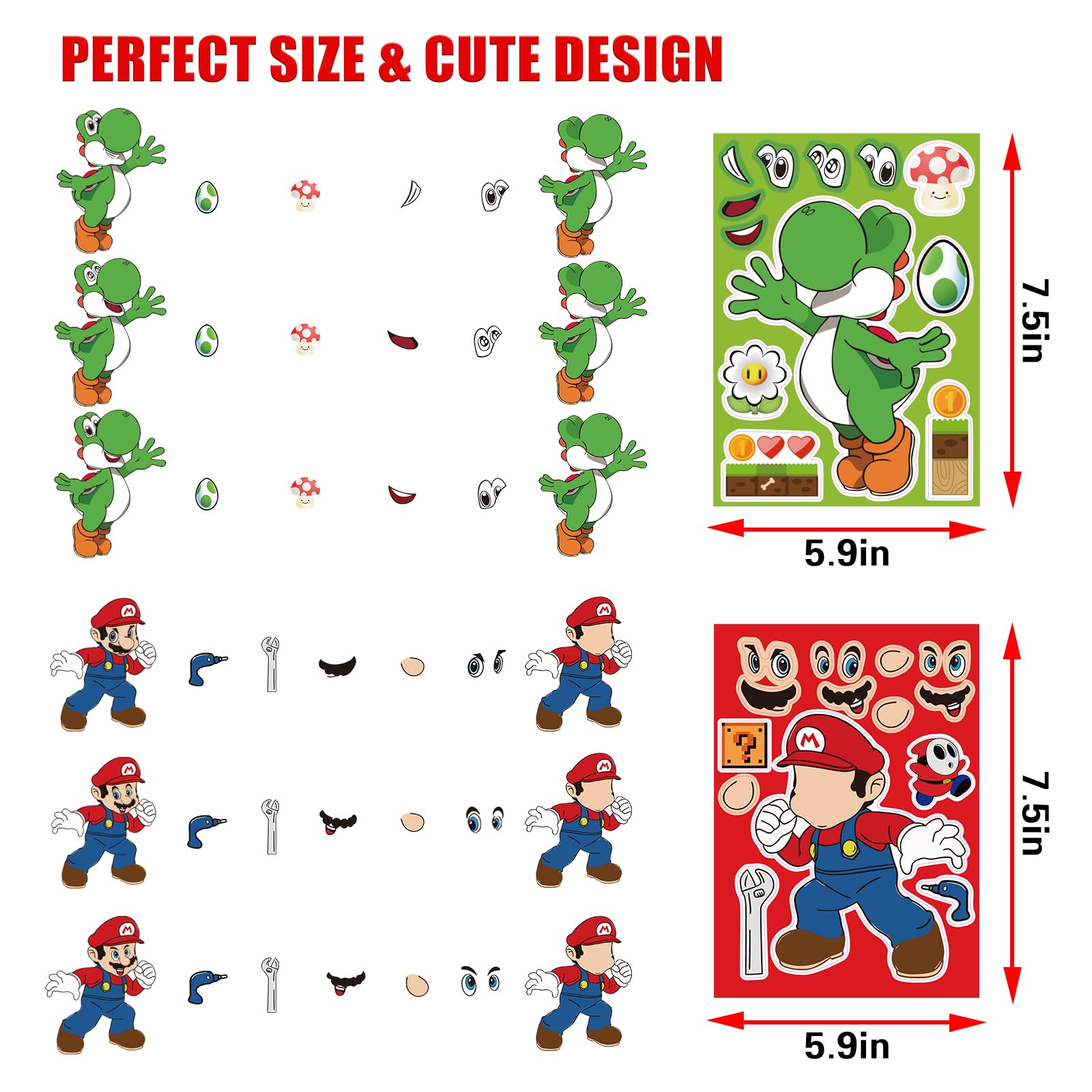 Good Quality PVC Sticker: Non-toxic, Odorless, Waterproof. It's Specially tailored for kid's party & mario fans party. Sticker surface has protective film and lubricating coating, so small matching sticker can be repeatedly pasted, never tearing.