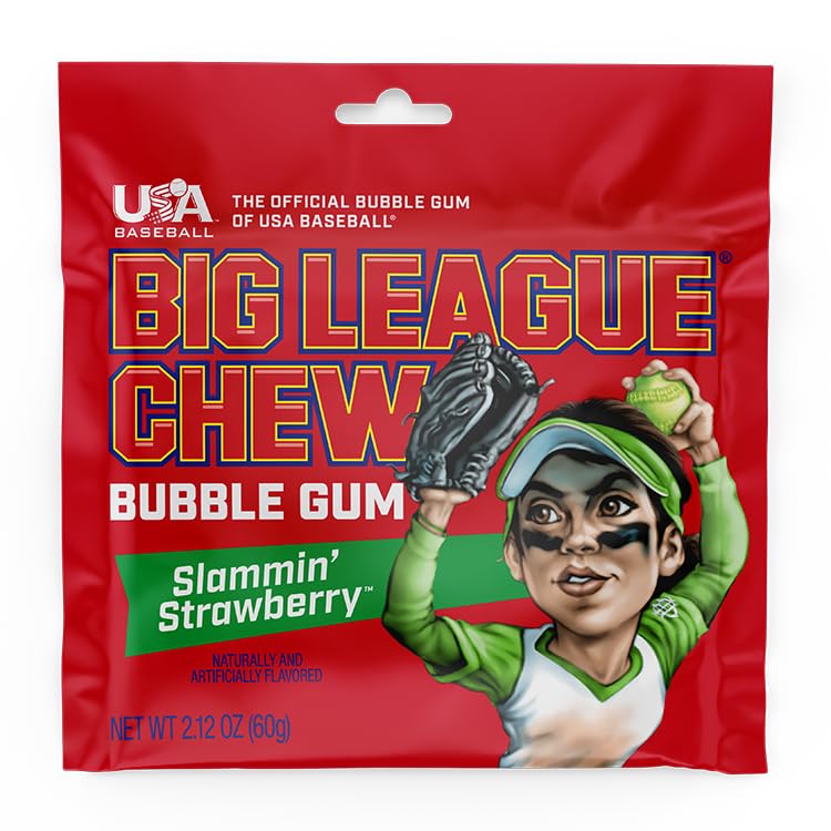 THE OFFICIAL BUBBLEGUM - Your favorite chewing gum Big League Chew, now available in Strawberry that is perfect for baseball and softball season in the dugout for the team and coaches, courtside at basketball games, football fields, soccer, lacrosse, or any sport indoor and outdoor.