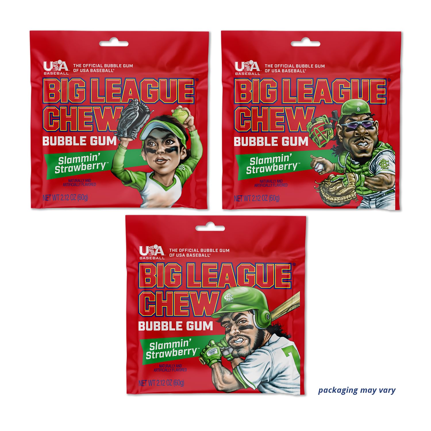 GREAT TASTING FLAVOR - Slammin Strawberry flavor is the new favorite taste for kids, teens, and adults across the country. Chew a piece while grilling at a summer BBQ, enjoying the sun at an outdoor event, while mowing the lawn, driving on the family road trip, or while checking out your Topps Baseball Trading Cards. It’s the classic Big League Chew Flavor from America’s favorite chewing gum brand.