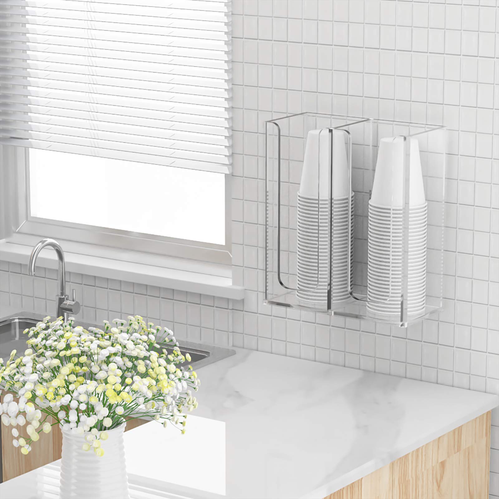 Functional - comes with 4 pre-drilled holes on the back of the cup dispenser, it can be either mounted on wall or placed on countertops of your bathroom, kitchen, office, coffee station.