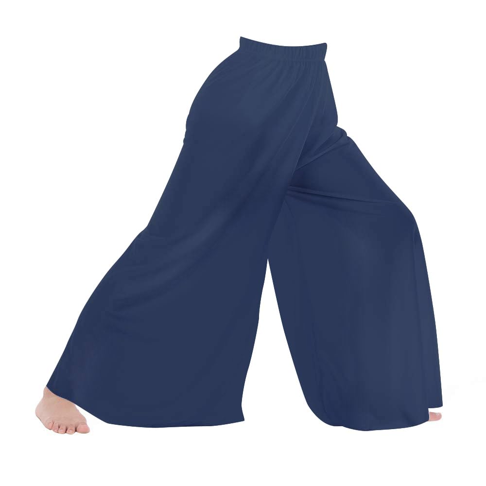 Description Palazzo pant is designed for dancers that perform spiritual or liturgical dancing. This pant features a loose and extra wide leg fit. The polyester/spandex fabric is smooth, soft, and moves easily when dancing. The elastic waistband design provides a comfortable fit and easy changing for performances. The palazzo pants are made in full length in order to fit the majority. But no need to worry about them being too long. You can easily cut to your size in length without a need for a hem as the material does not unravel or fray.