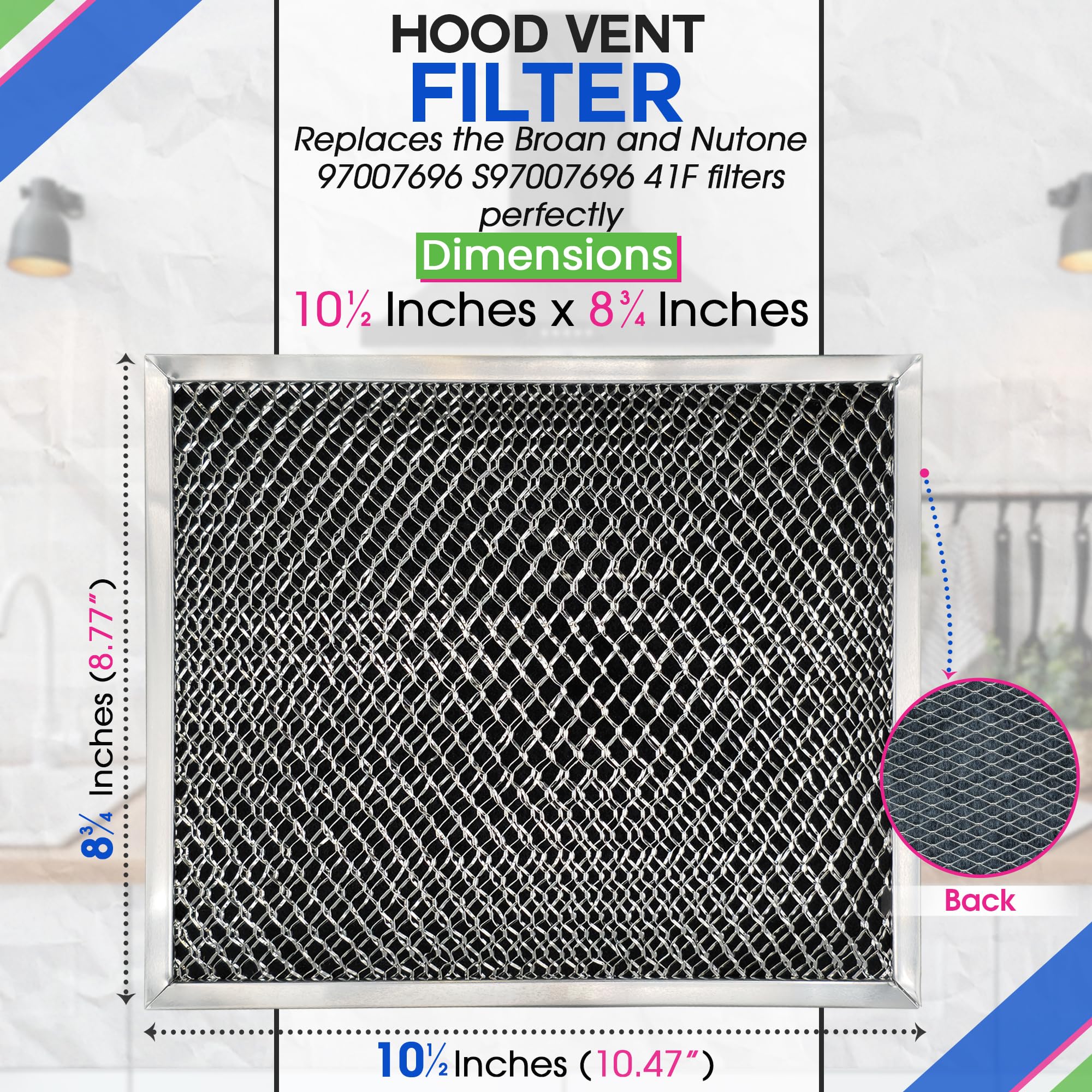 PERFECT REPLACEMENT: This 8 3/4" x 10 1/2" stove filter vent replacement perfectly replaces the 41F 97007696 Broan range hood filter and NuTone kitchen exhaust fan filter.
