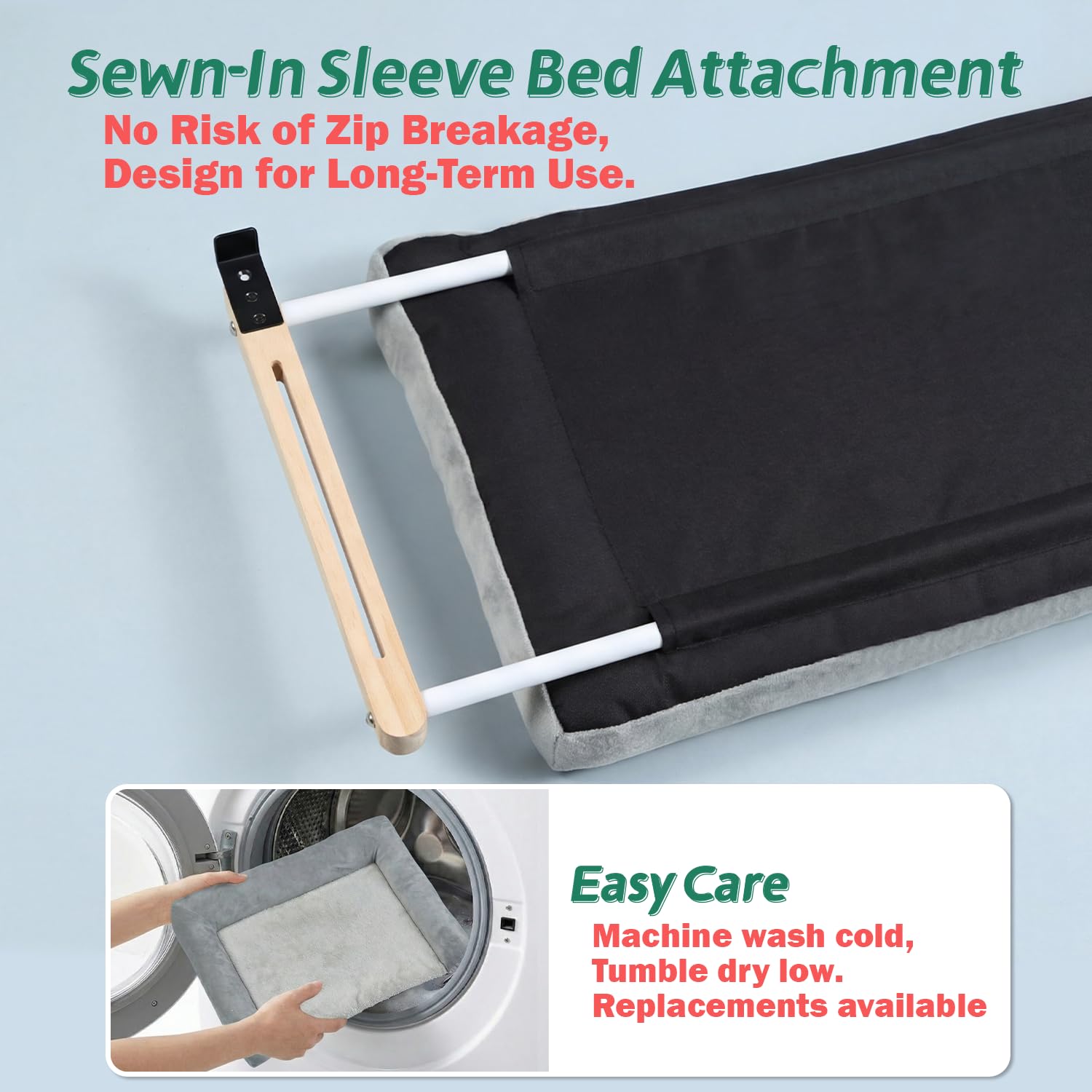 【Machine Washable Bed, Replacements Available】 The cushion can be removed for cleaning, take off the bed, cold wash and low tumble dry, then reinstall. Replacement beds are available for purchase. Search: B0D5MDR2N5