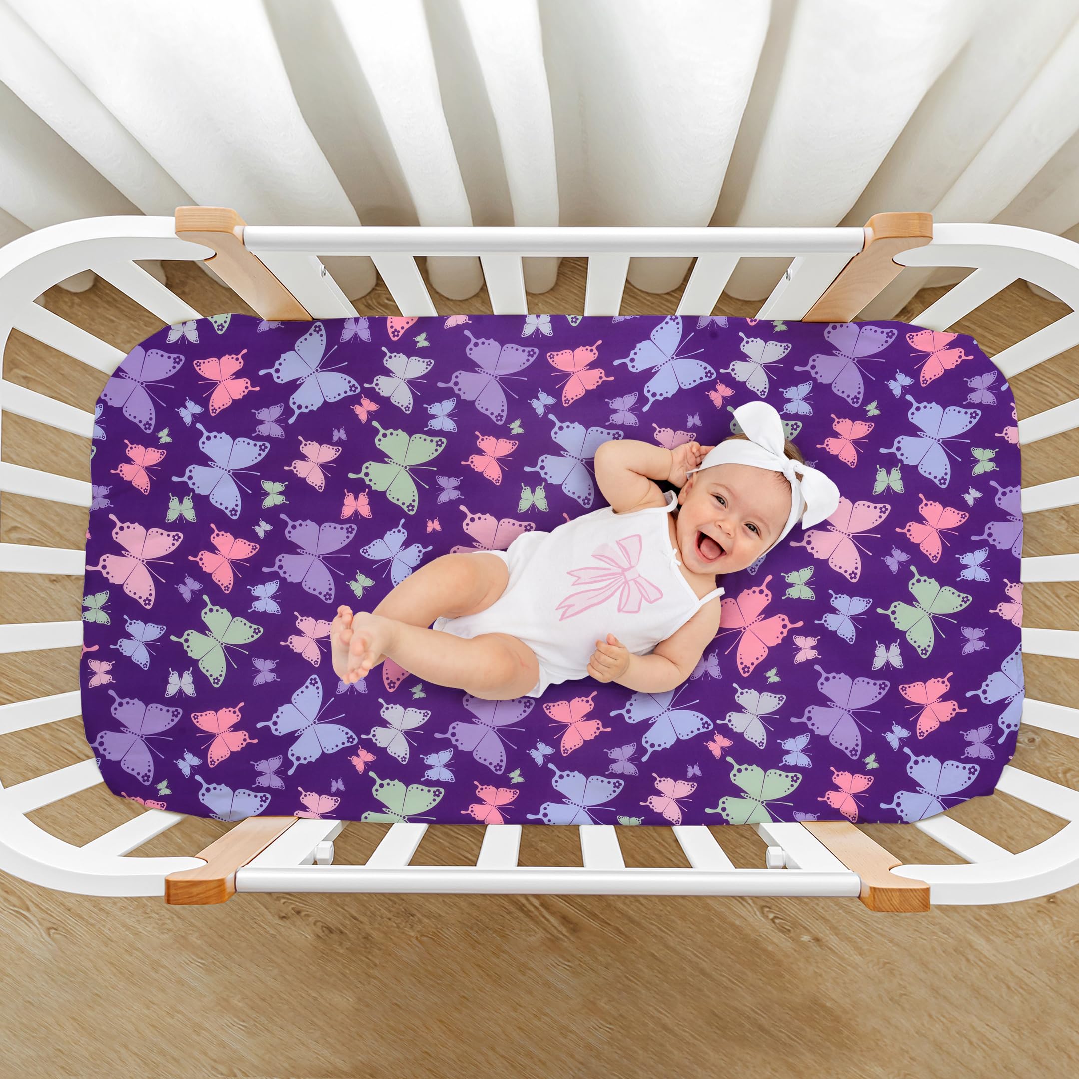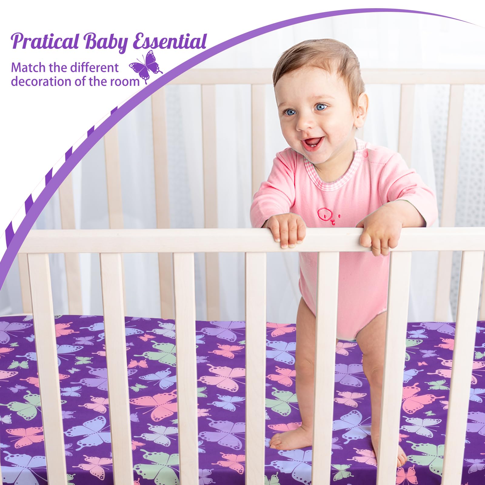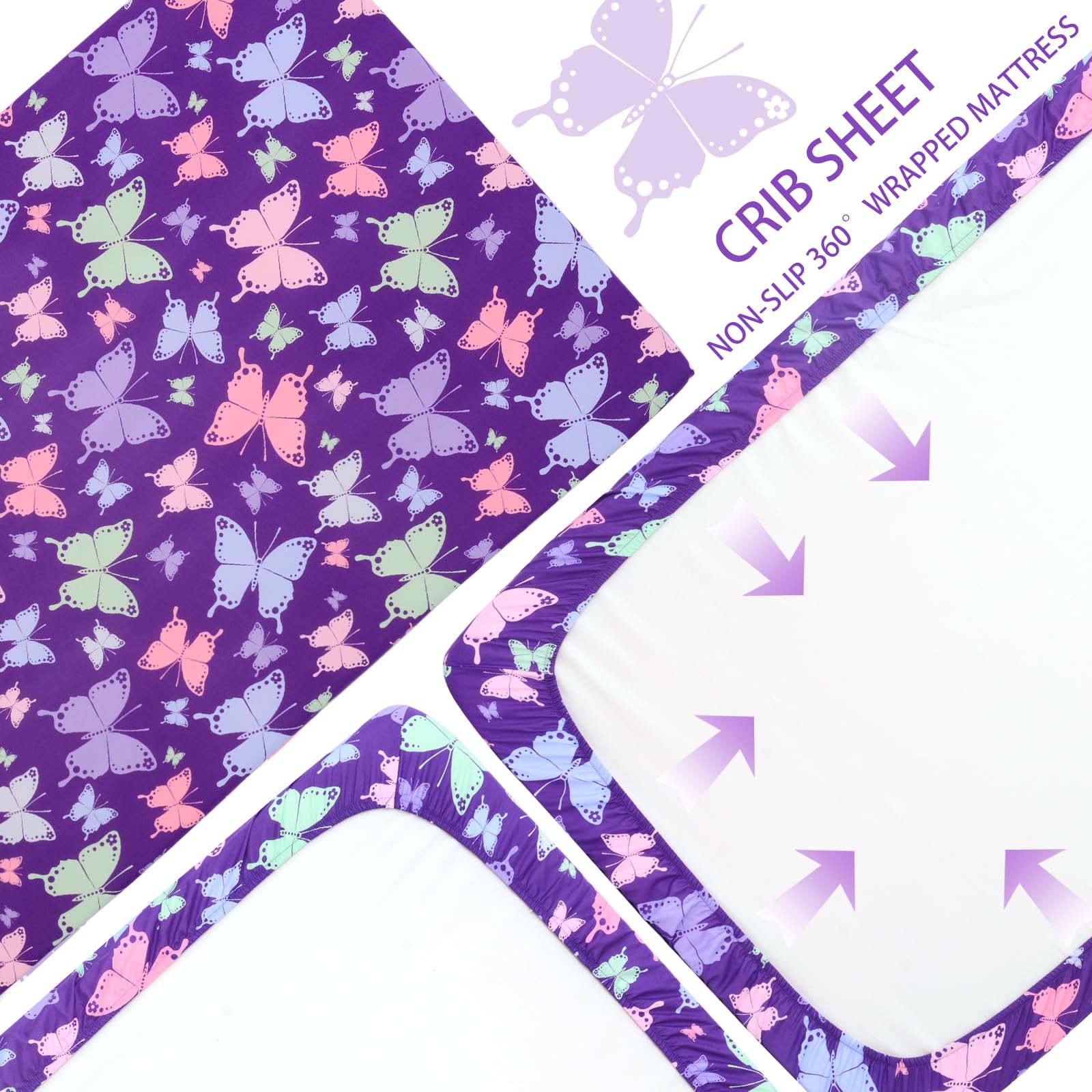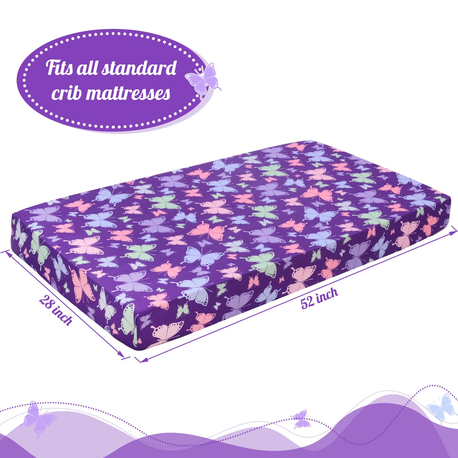 【PERFECT SIZE】Dimension 52*28*5‘’.Our butterfly fitted crib sheet fits all standard crib mattress,making this item perfect for transitioning your little one from their crib to a toddler bed.