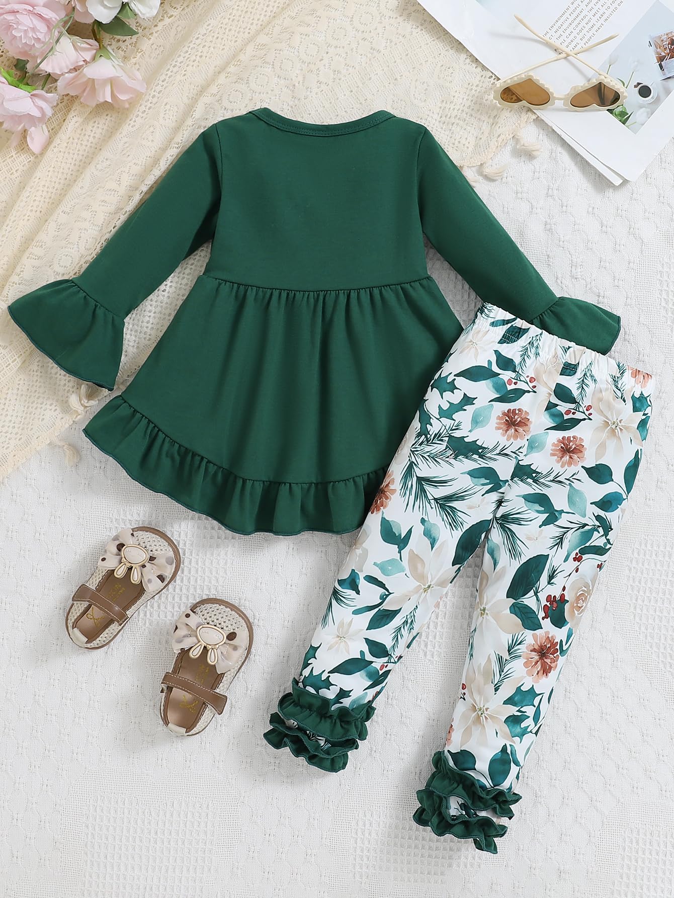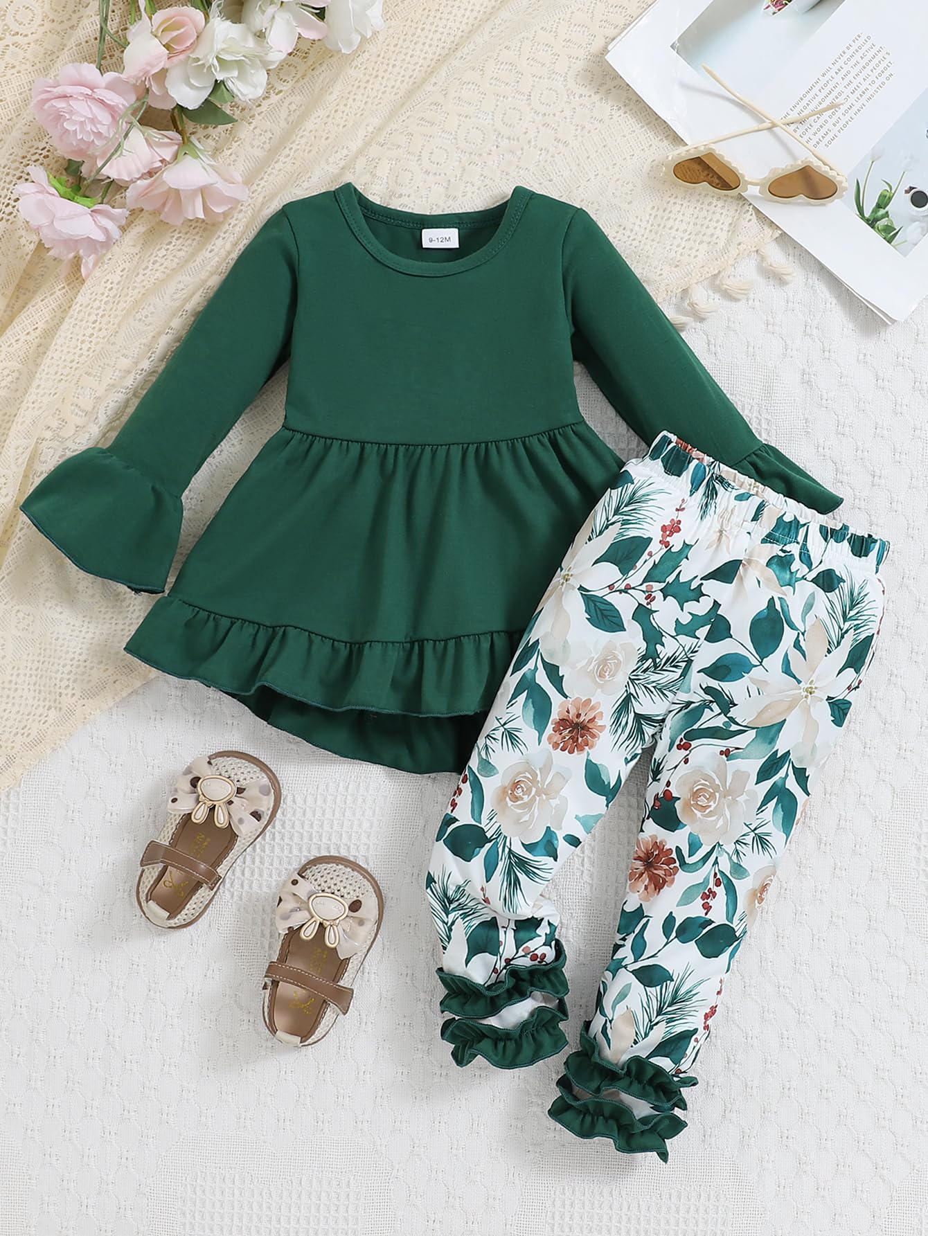 DESIGNS: The baby clothes set features short sleeve ruffle top with high low hem design, baby girls ruffle pants with a comfortable elastic waistband, floral print,and adorable ruffle detail, which accentuate the children's beauty and loveliness.