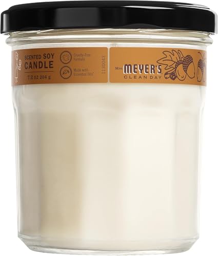 Sometimes it feels good just to have a nice candle giving off some extra fragrance while you're busy with your chores. A Mrs. Meyer's Clean Day Acorn Spice Candle can help you do exactly that. Let the wonderfull scent of Acorn Spice scent fill your room. Acorn Spice scented candles are a special autumn surprise. The satisfying, nutty scent of acorn is blended with a touch of cinnamon and vanilla scent for an irresistible air of comfort and warmth. The cute recyclable glass candle jar makes it a great gift idea as well. All candles are made from vegetable, cottonseed and soy wax as well as other thoughtfully chosen ingredients. The lead-free cotton candle wick has a 35-hour burn time and provides garden fresh inspired fragrance while you clean or relax at home. Also available in other garden-inspired scents and products such as body lotions, laundry detergents, bar soaps, and so much more! Mrs. Meyer's - Rooted in Goodness.